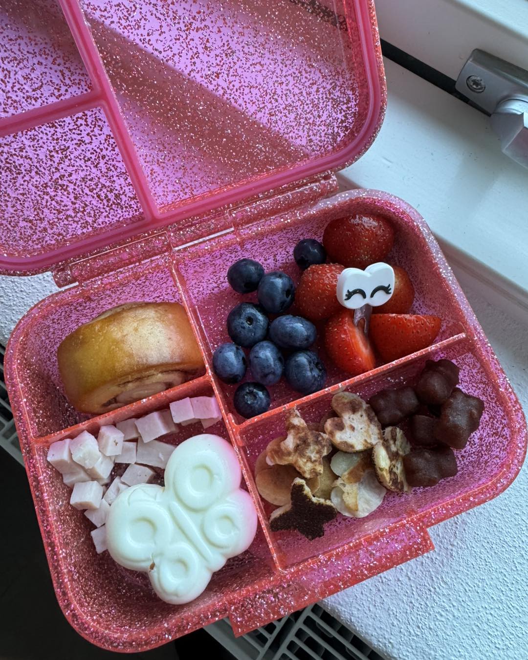 Giv måltiderne et glitrende touch med den stilfulde LEKKABOX mini madkasse i lyserød glimmer 💖✨. Denne kompakte "10’er madkasse" med 3 rum er perfekt til snacks og små måltider, hvilket gør det sjovt og praktisk at tage mad med på farten. Ideel til skole, legeaftaler eller udflugter, bliver denne madkasse hurtigt en favorit hos børn!