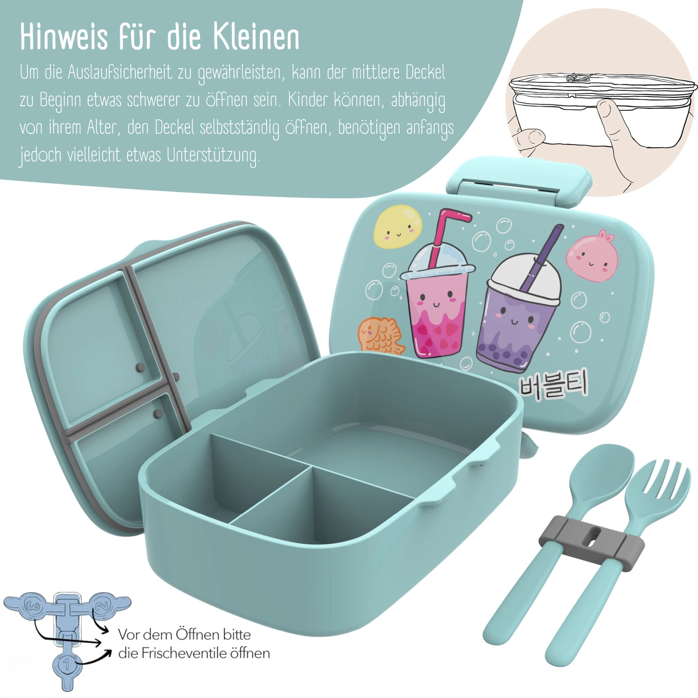 Giv børnenes madpakker et sjovt twist med denne charmerende madkasse fra Bearfoot. Den flotte blå/tyrkis farve prydes af et håndtegnet motiv af Bubble tea, – et perfekt blikfang til skoledagen! Madkassen er ikke kun visuelt appellerende, men også yderst funktionel. Med de medfølgende brevklistermærker kan forældre og børn tilpasse madkassen og gøre den helt personlig.