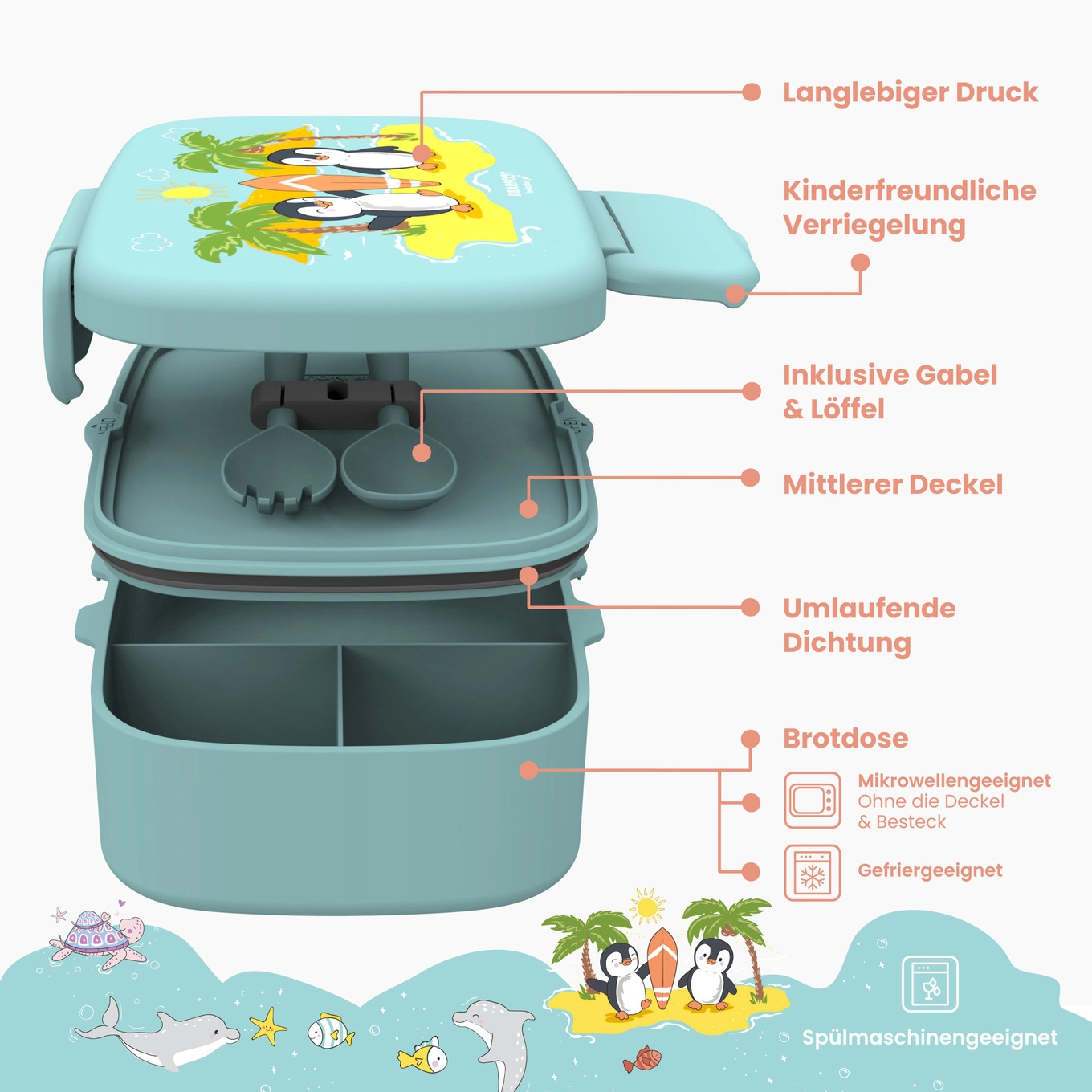 Madkassen er udstyret med et nemt lukningssystem, der sørger for, at alt indhold forbliver sikkert – selv når den hvirvler rundt i skoletasken eller rygsækken. Derudover er madkassen (uden bestik og låg) mikrobølgesikker, hvilket gør det nemt at opvarme maden direkte.