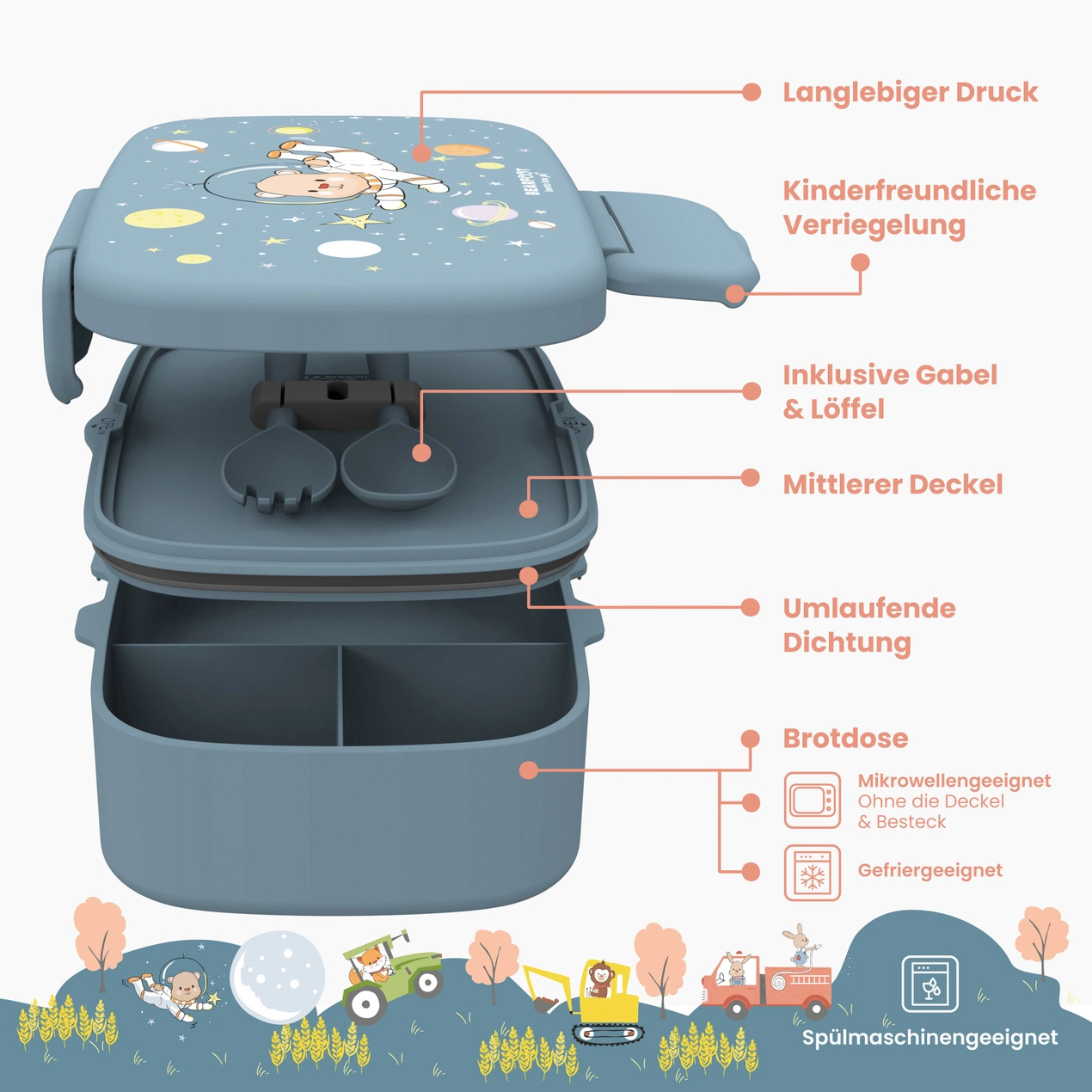 Bearfoot Madkasse med bestik – Blå gravmaskine og abe