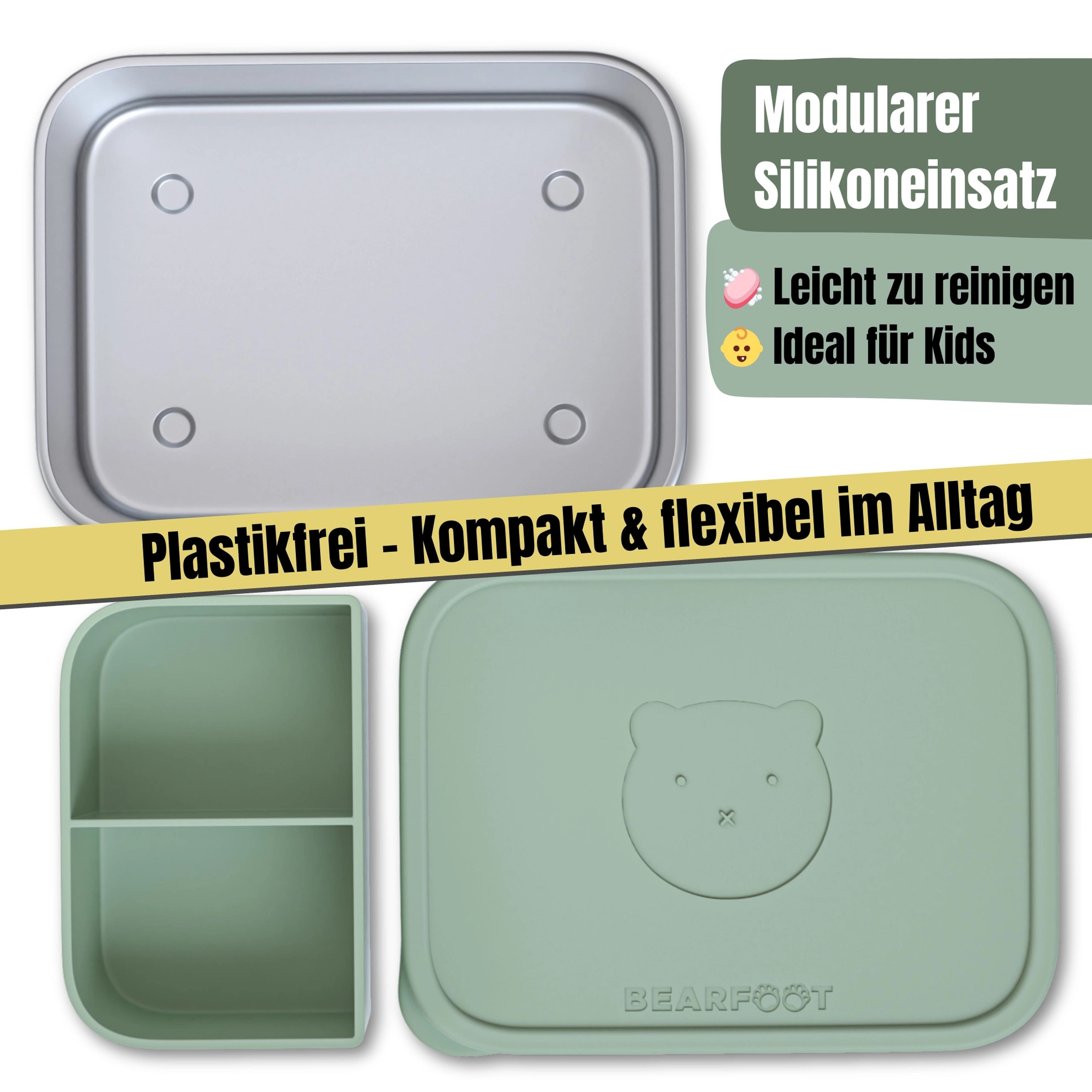 Bearfoot madkassen i rustfrit stål i farven salvie er en robust og praktisk madkasse til daglig brug. Med en kapacitet på 700 ml er der god plads til frokost, snacks eller en kombination af begge dele, hvilket gør den velegnet til både skole, arbejde og udflugter.