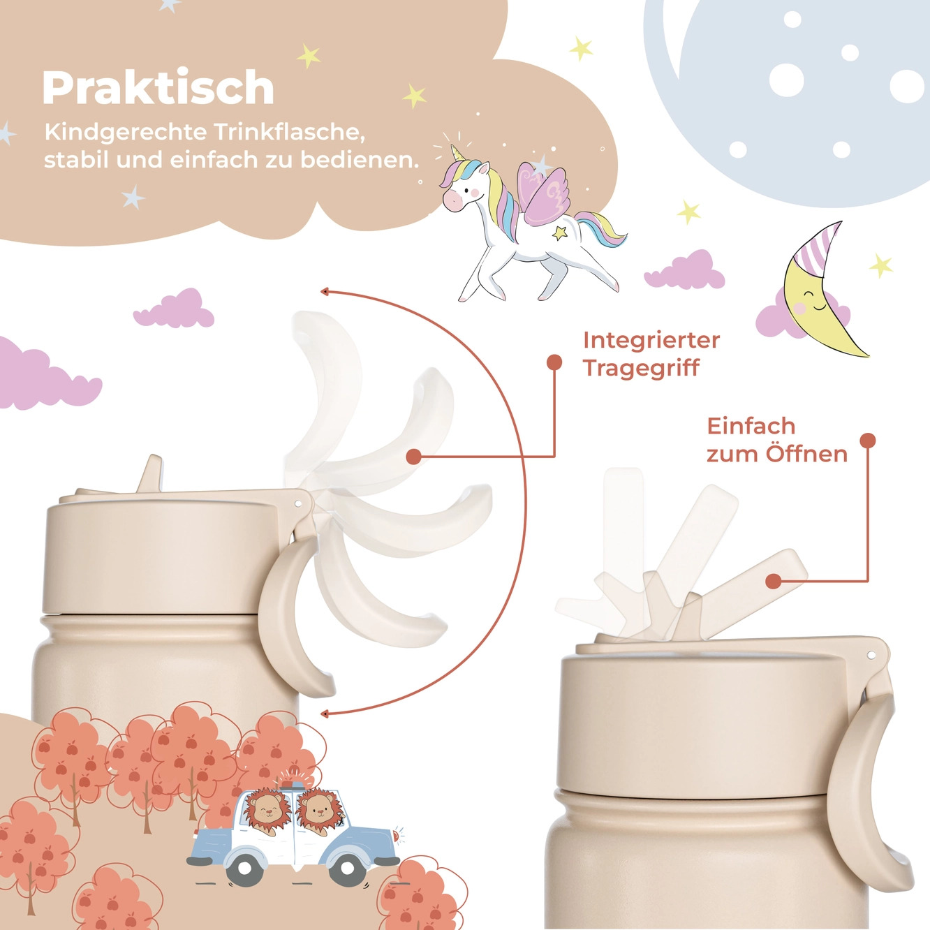 - Flip-tud med sugerør: Det praktiske flip-tud-design gør det nemt for børn at drikke uden spild, mens sugerøret sikrer en behagelig drikkeoplevelse.