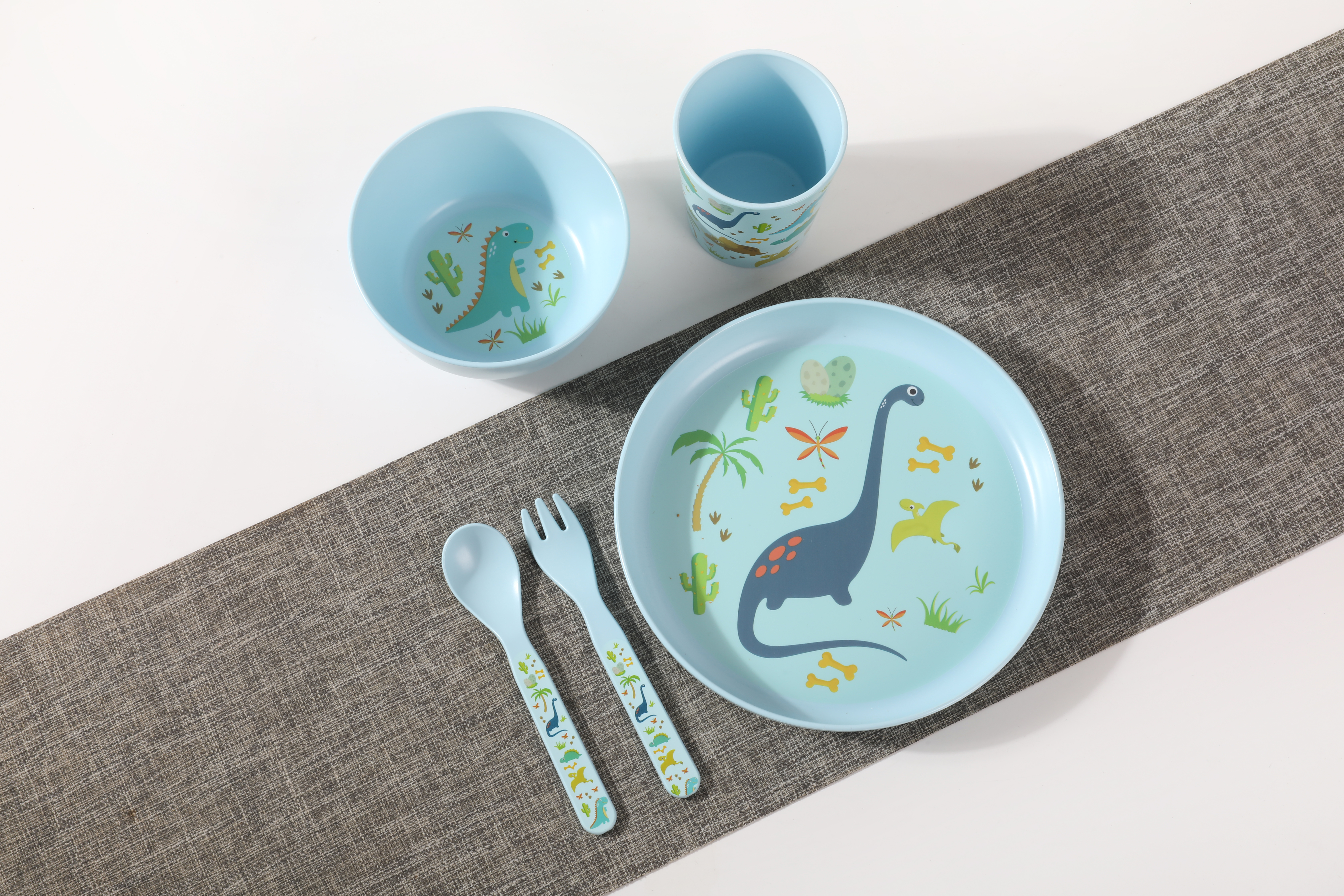 Servicesættet indeholder de vigtigste dele til barnets måltider og er fremstillet i robust og fødevaregodkendt materiale, som tåler daglig brug. Delene er nemme for små hænder at håndtere og lige så nemme at rengøre efter måltidet.