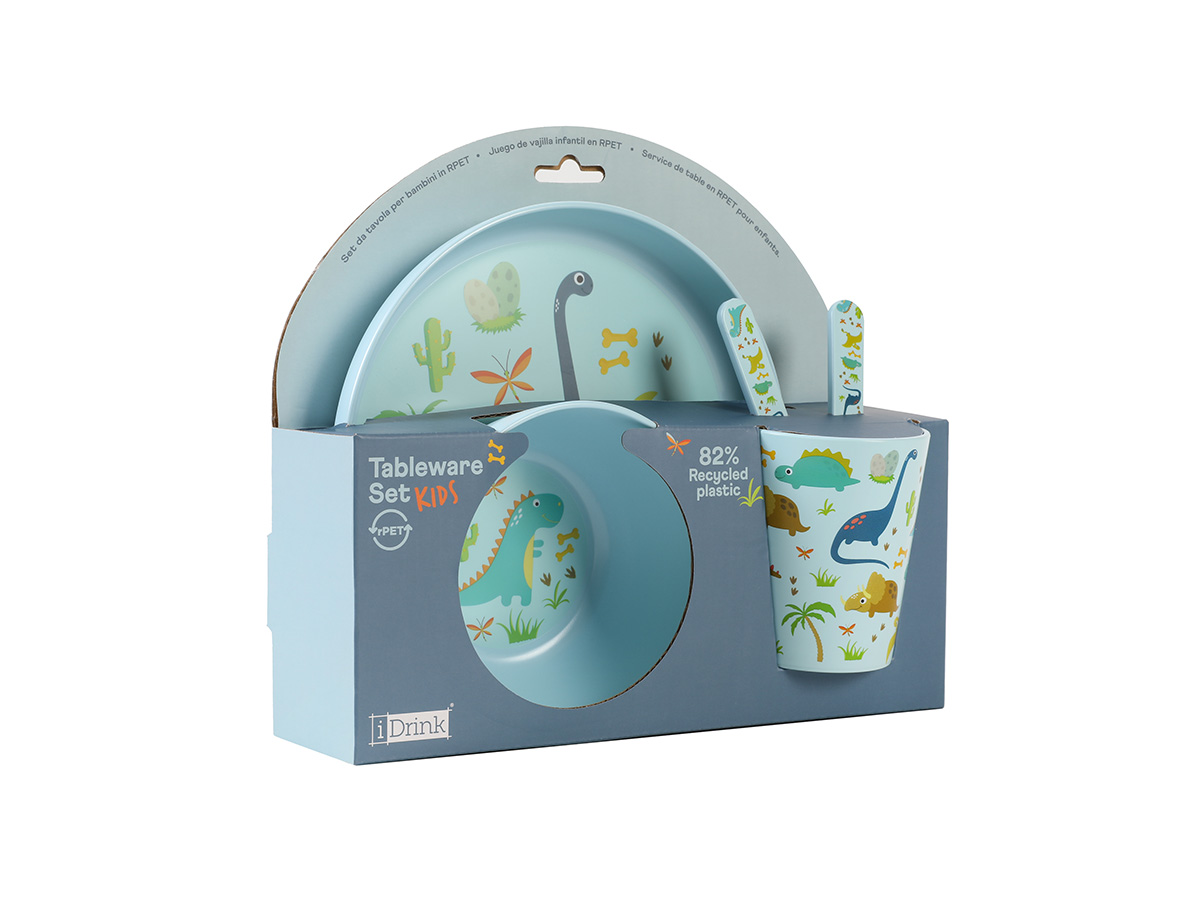 Gør måltiderne endnu sjovere med det seje iDrink børne servicesæt i Dino-design. Dette sæt er lavet med motiver, der vækker barnets fantasi og skaber glæde ved spisebordet.