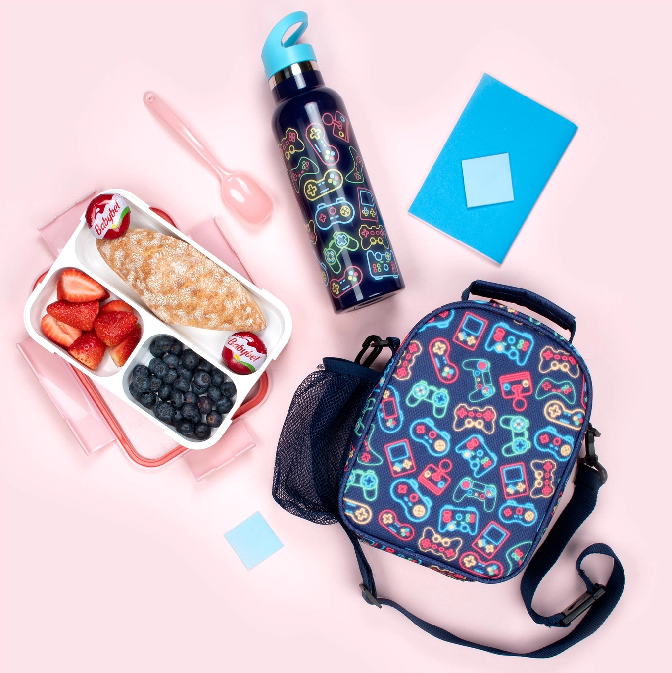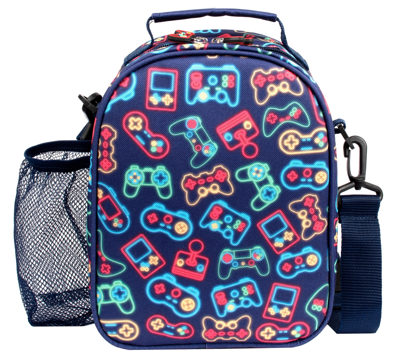 Denne køletaske kombinerer stilfuldt gamer-design med praktisk funktionalitet – perfekt til både skole, udflugter og fritid.