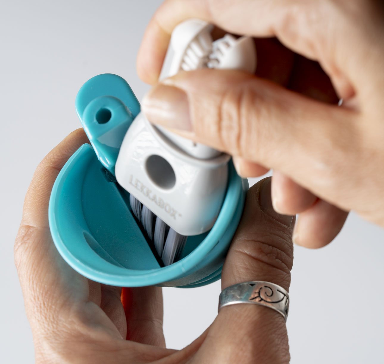 Hold dine madkasser og drikkeflasker i topform med denne praktiske rengøringsbørste – perfekt til at komme ind i de små riller og områder, hvor madrester ofte gemmer sig.
