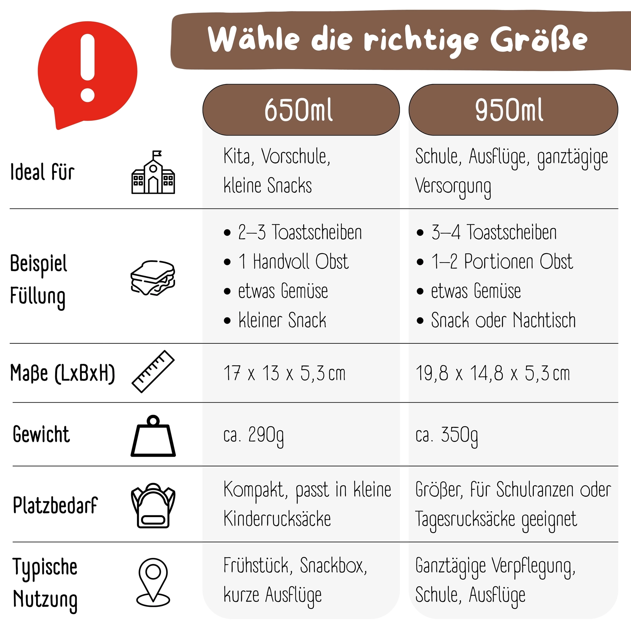 Selvom den rummer op til 950 ml, er Bento Box COMPACT både let og kompakt, så den passer perfekt i skoletasken eller rygsækken. Den er lavet af testede, sikre materialer uden BPA, og den kan nemt rengøres efter brug – en madkasse, der kan følge familien i mange år frem.