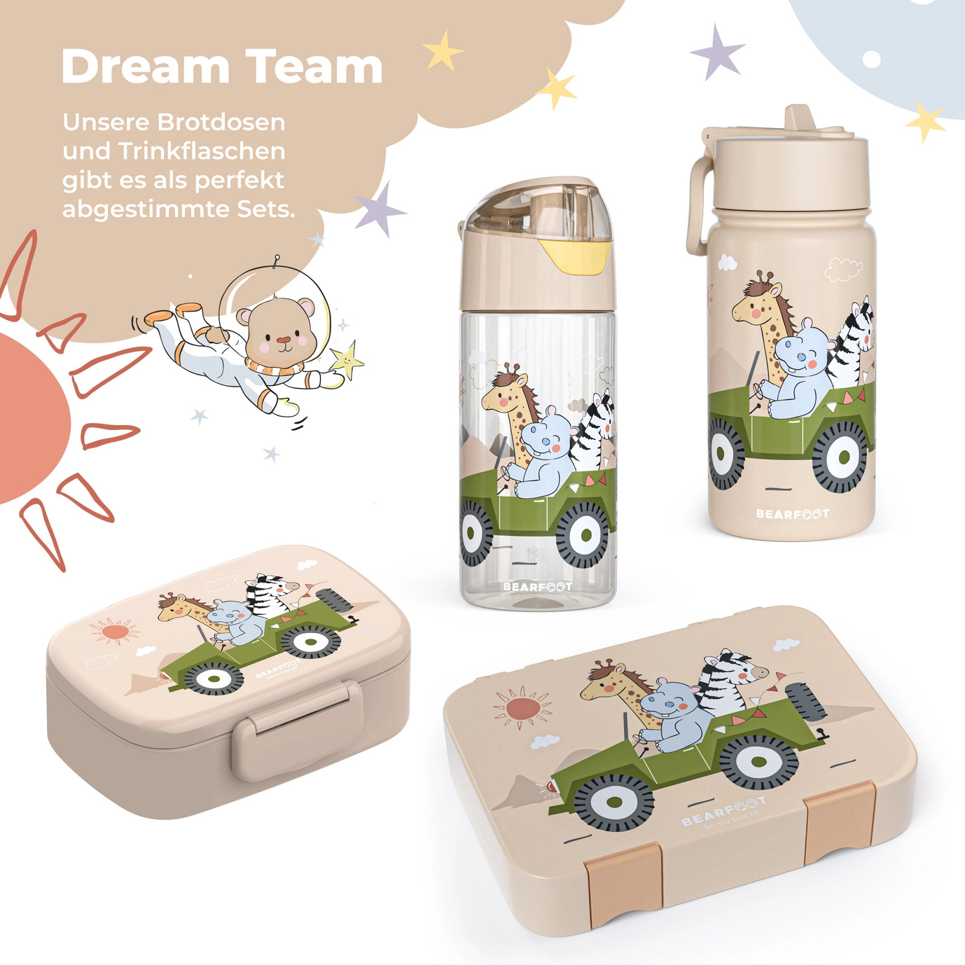 Overrask dit barn med en drikkedunk, der kombinerer funktionalitet med sjov! Med Bearfoot drikkedunken med Safari kan vandpause blive til en spændende oplevelse. Perfekt til skole, leg og eventyr – denne letvægtsdrikkedunk vil helt sikkert blive en favorit!