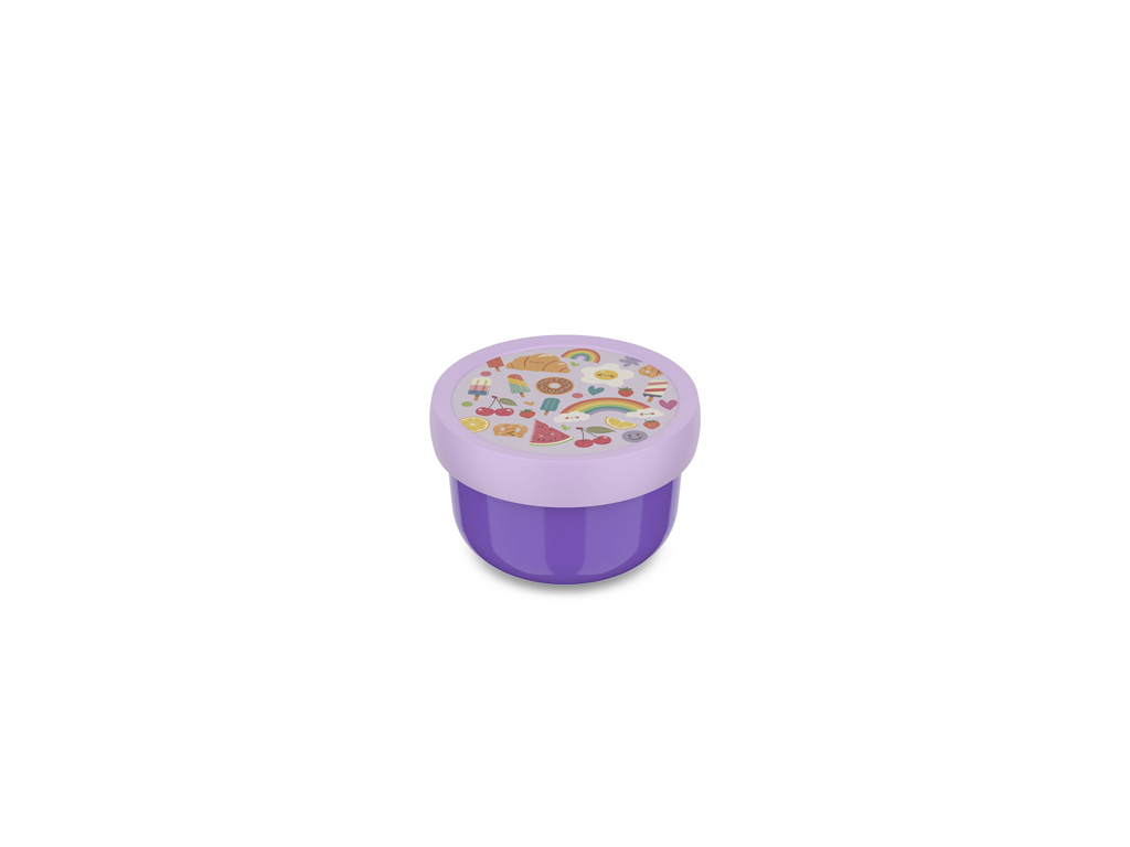 Madkassen lukker helt tæt, og låget klikkes fast og løsnes ved at trykke på knappen på fronten, så der er ingen risiko for, at madkassen åbner sig i tasken. Madkassen måler 17,8 x 13,2 x 6,1 cm og indeholder en lille gaffel og en udtagelig indsats med to små rum.