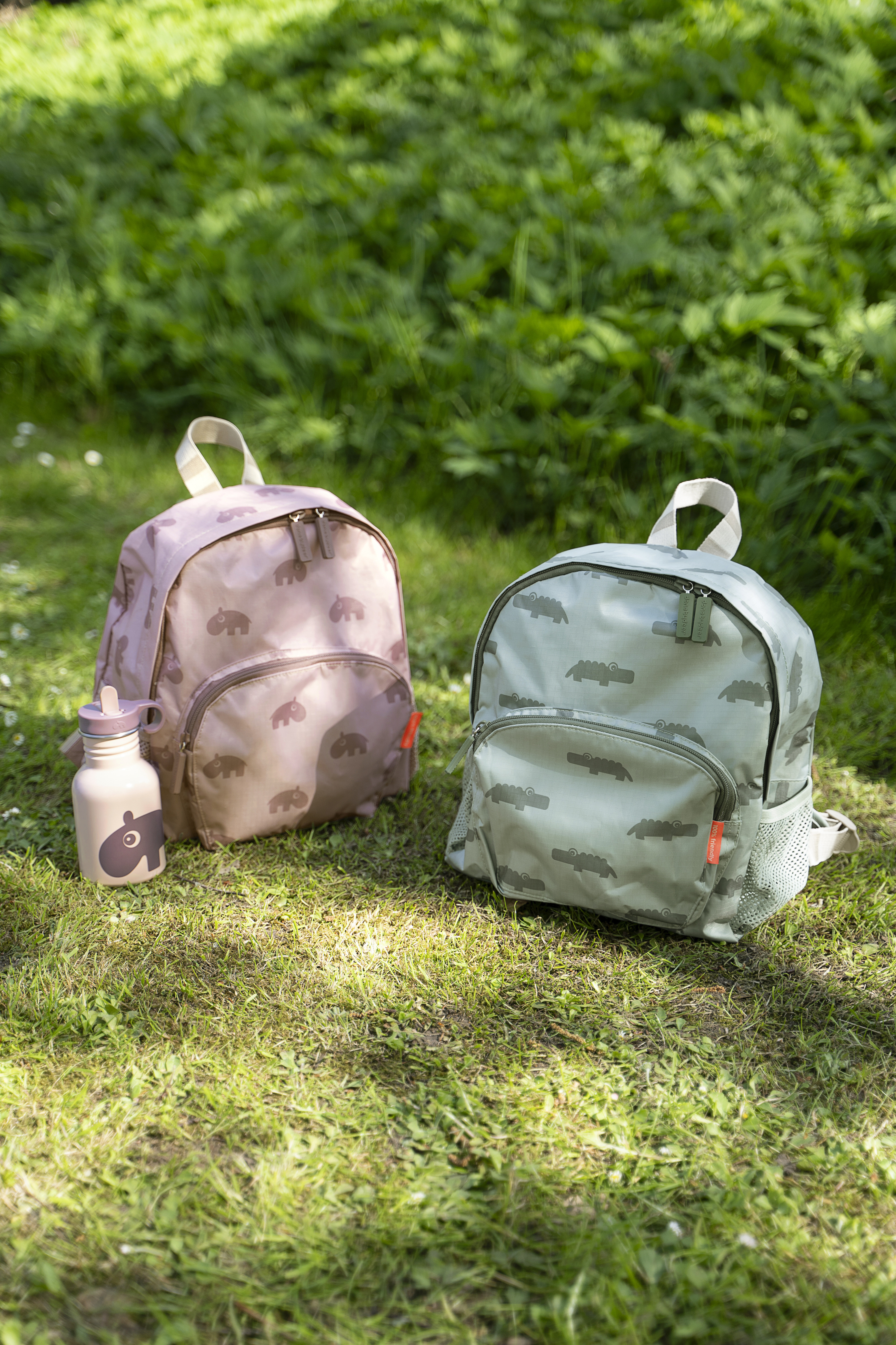 Den praktiske metalflaske i puddernuancer er dekoreret med den elskværdige Ozzo.