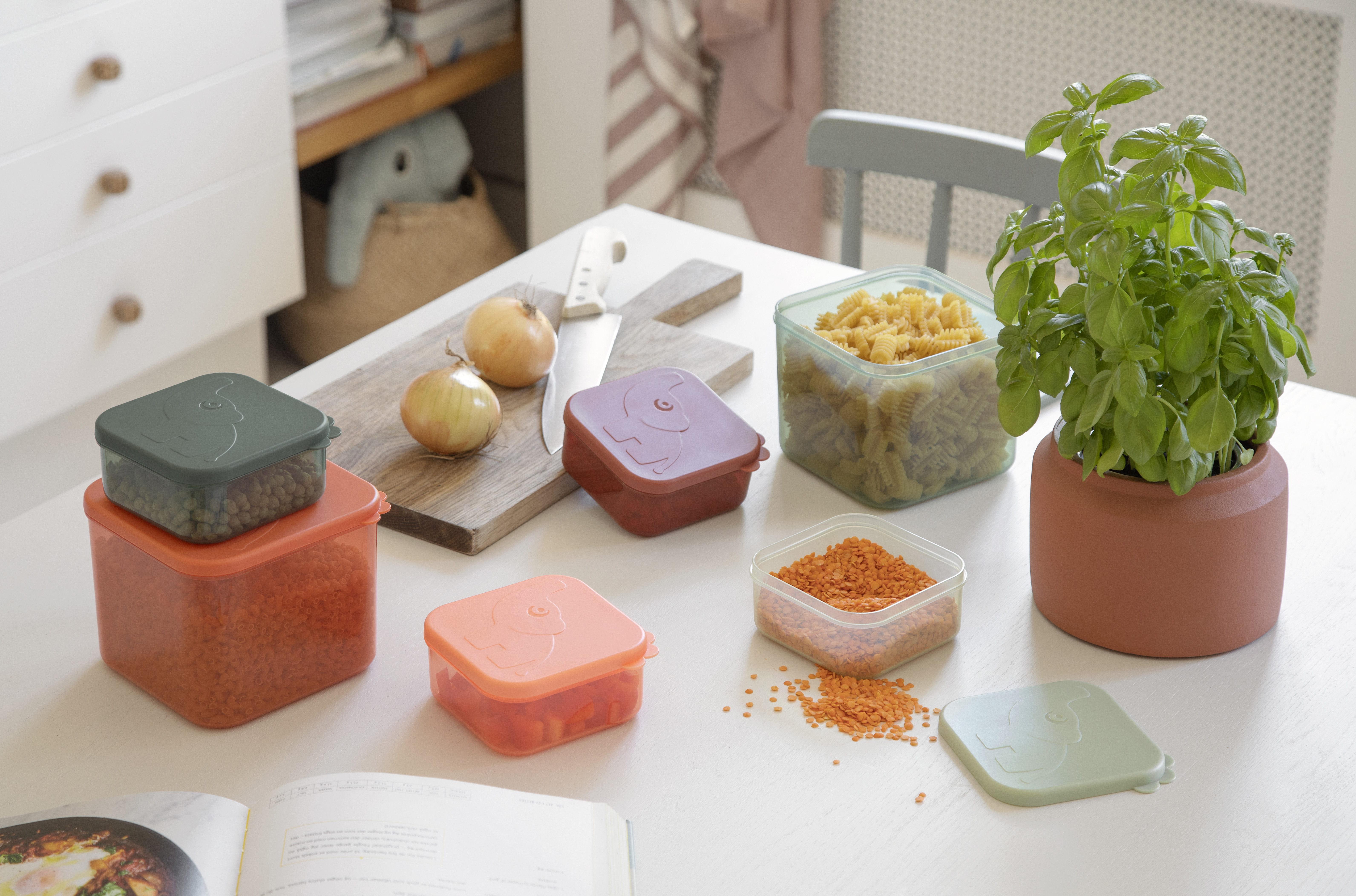 De halvgennemsigtige beholdere kan bruges af hele familien. Lågene har søde Croco-skalaer for nem åbning, og beholderne er egnet til fryser, mikroovn og opvaskemaskine. Farverne matcher endda vores madkasser.