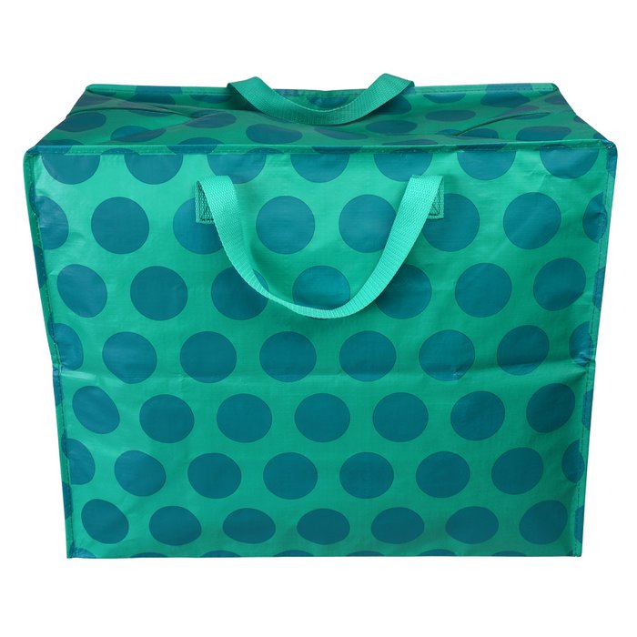 En praktisk og rummelig jumbo-opbevaringspose, der gør hverdagen nemmere. Poserne er fremstillet af genbrugsmateriale, har en solid lynlås og stærke nylonhåndtag, som gør dem både holdbare og lette at bære.