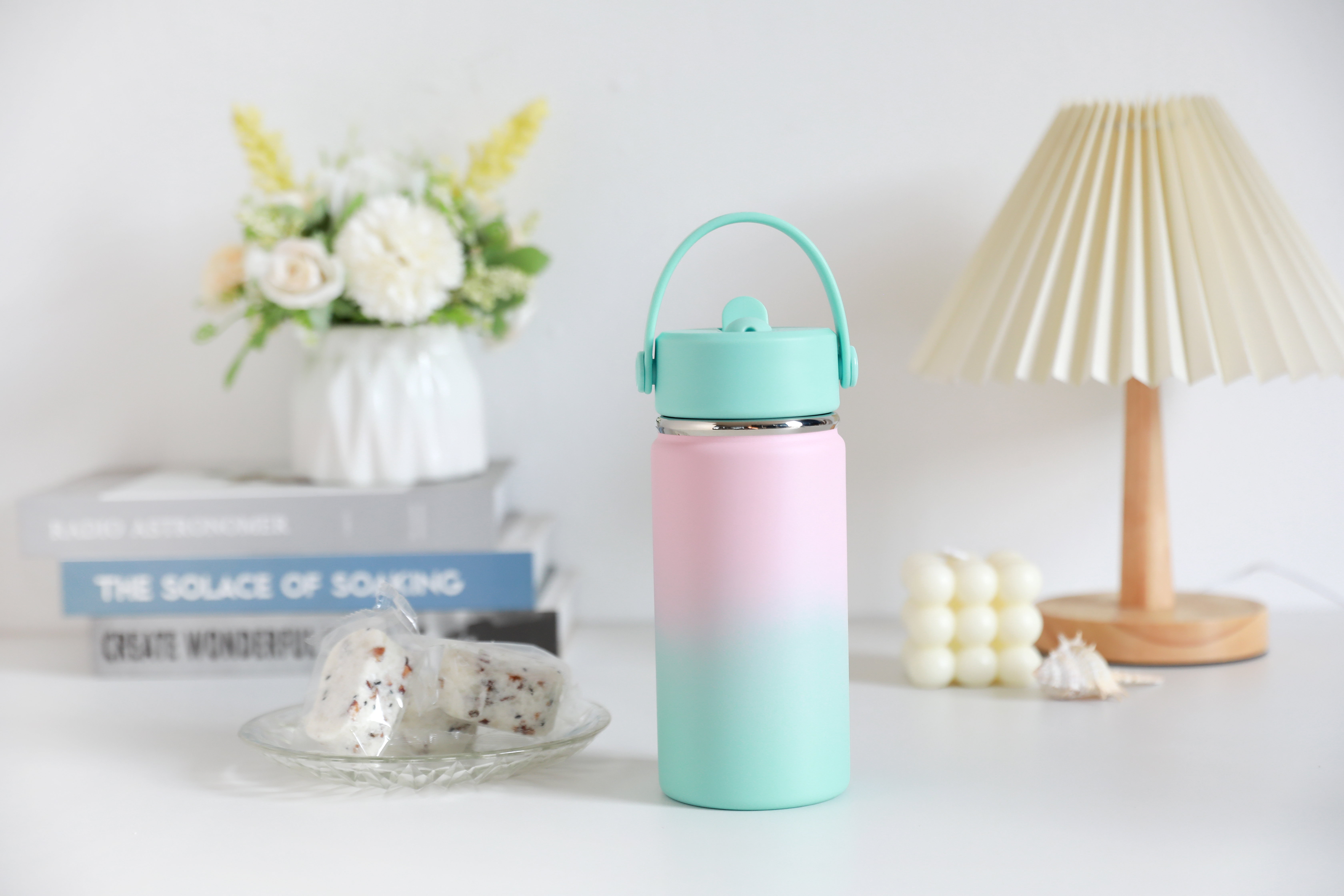 Hold dig hydreret med stil med denne smukke iDrink Termoflaske i pastel ombre-design! Den bløde overgang farverne giver et friskt, moderne udtryk – perfekt til både børn og voksne på farten.