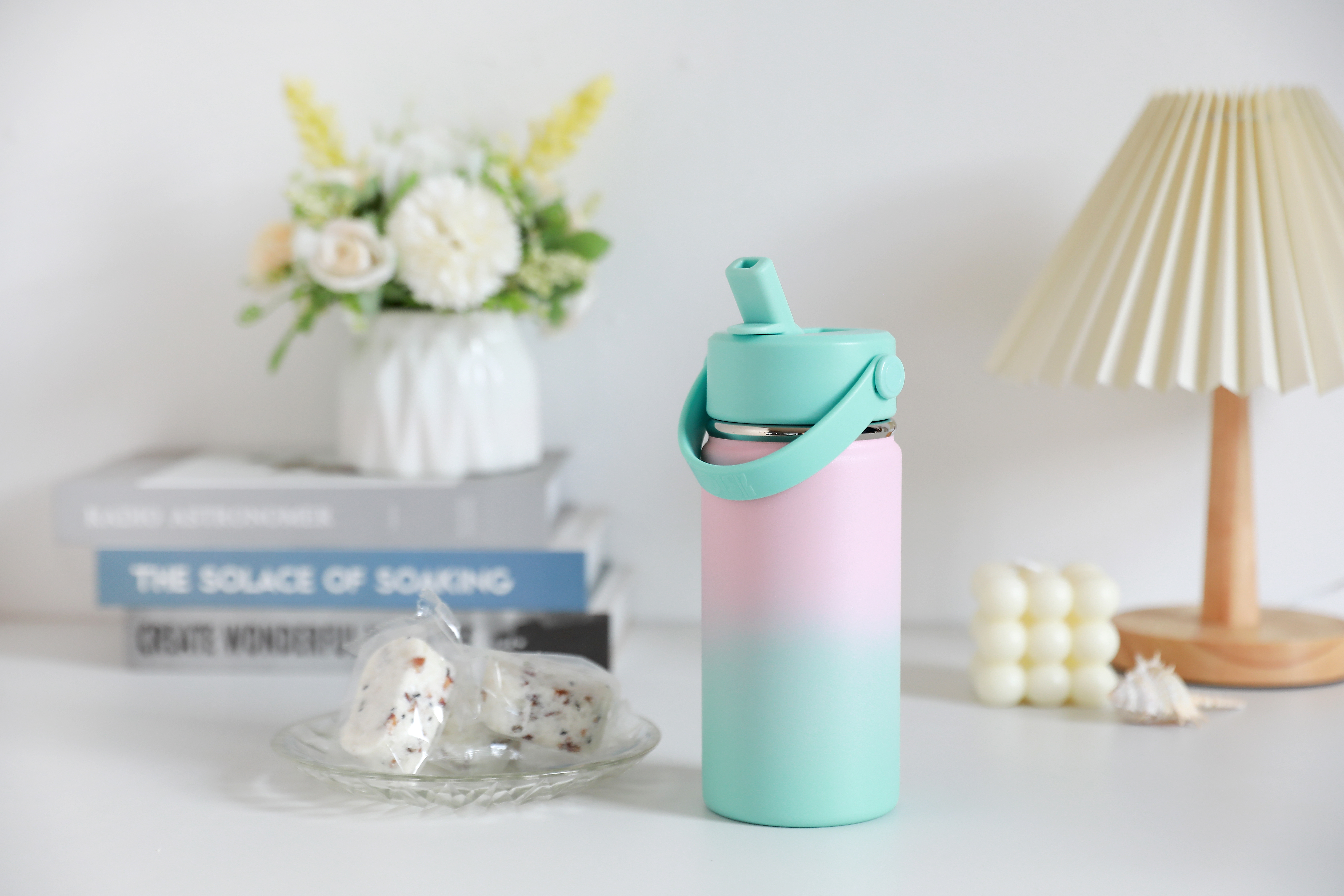 Flasken er fremstillet i dobbeltvægget rustfrit stål, som holder dine drikkevarer kolde i op til 24 timer og varme i op til 12 timer. Det praktiske låg med integreret sugerør gør det nemt at drikke uden spild, og den fleksible bærehank gør den ideel til skole, sport eller udflugter.