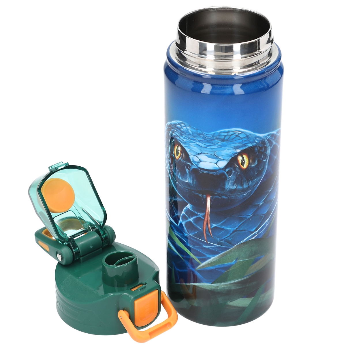 Adventure World Drikkeflaske med Snake-design er en praktisk og robust drikkeflaske på 600 ml, der er ideel til skole, sport og fritid. Den giver barnet mulighed for nemt at have vand eller anden drik med på farten gennem hele dagen.