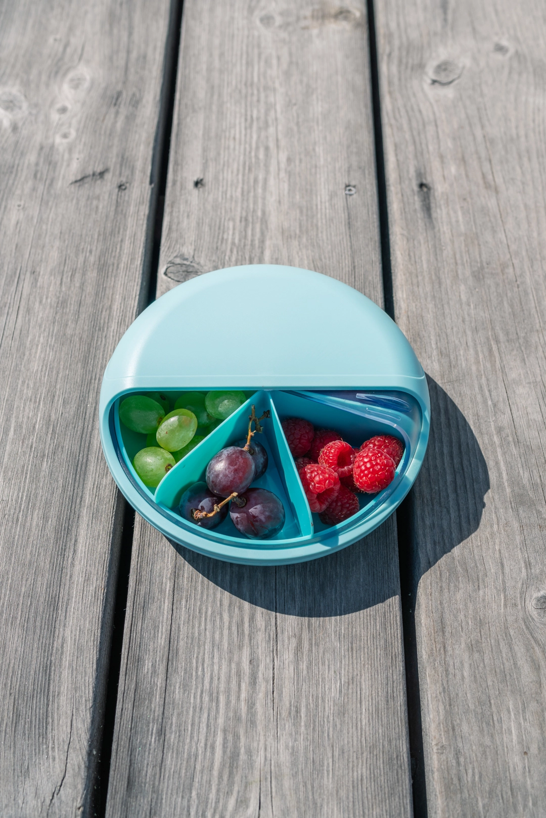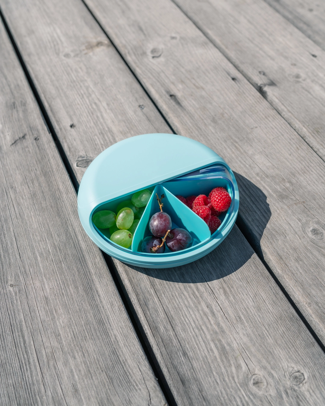 MiniDISC er perfekt til dagpleje, skole, bilture, picnic, hvor pladsen er knap, og du vil undgå engangsemballage. Den kompakte og genanvendelige løsning gør det nemt at tage sunde snacks med – uden rod.