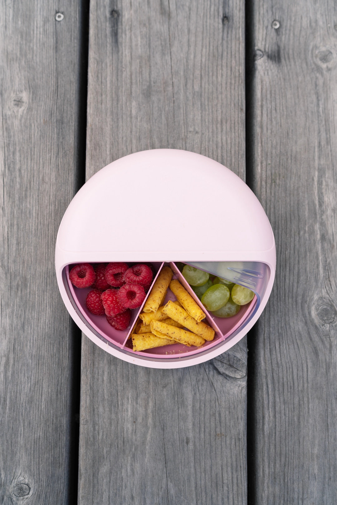 Gør snacktid både praktisk og underholdende med SnackDisc fra Carl Oscar®! Denne smarte, roterende snackboks har 6 drejelige rum, så du nemt kan opbevare forskellige snacks uden at de blandes. Fyld den med bær, nødder, tørret frugt eller lidt lørdags-slik – og drej for at vælge din favorit!