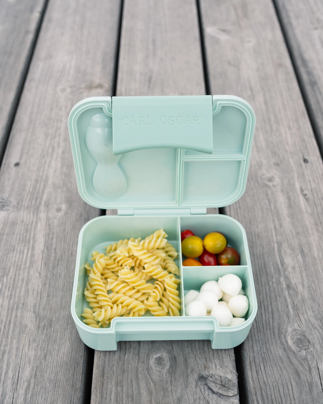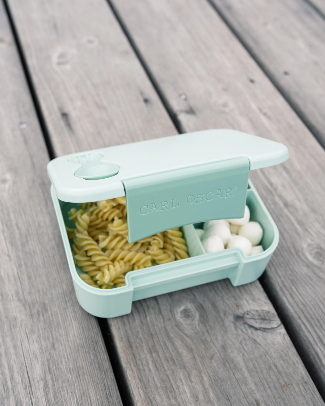 Den smarte madkasse er opdelt i tre rummelige sektioner, så du nemt kan adskille frugt, snacks og hovedmåltid – helt uden at smagen blandes.