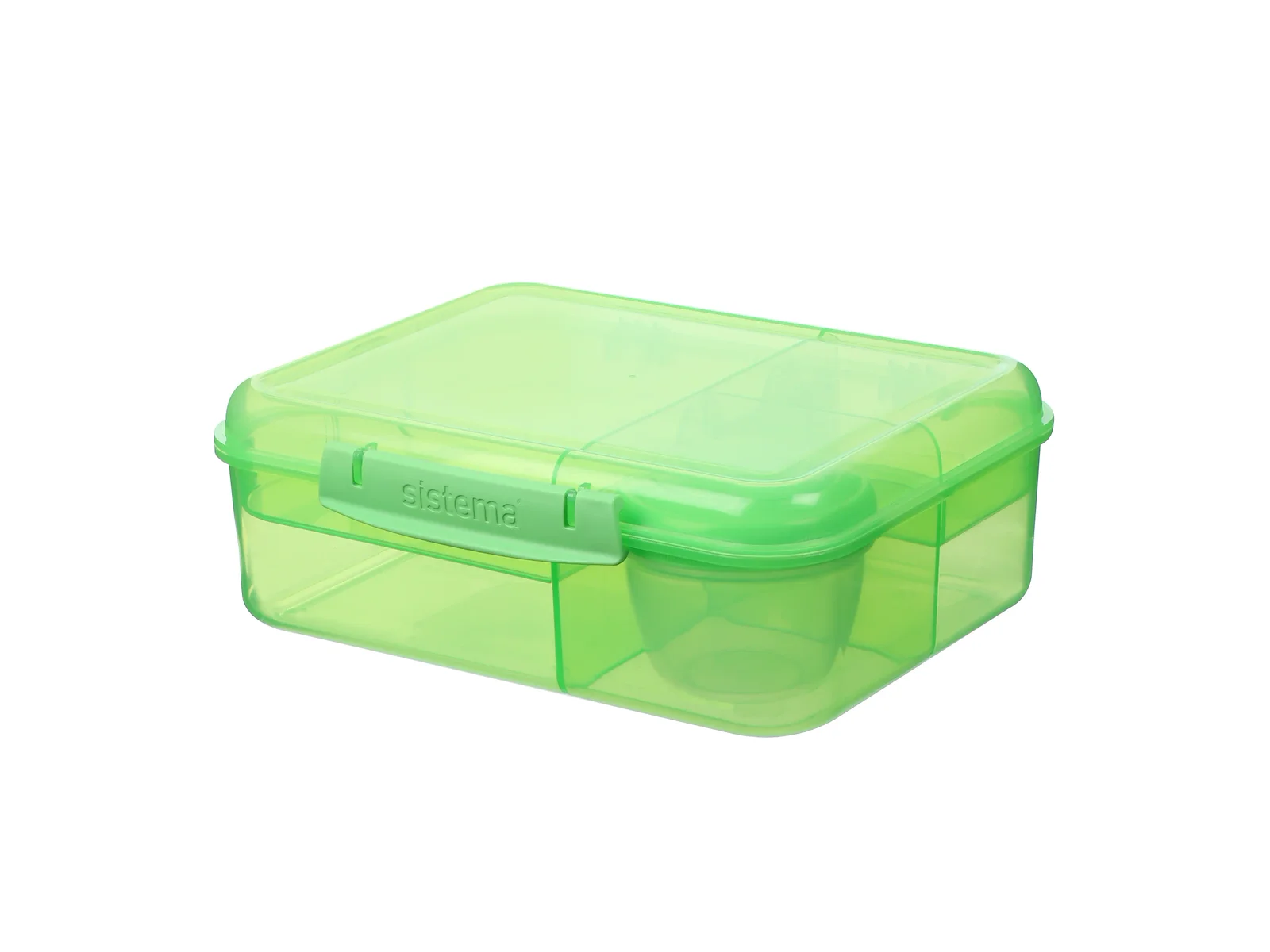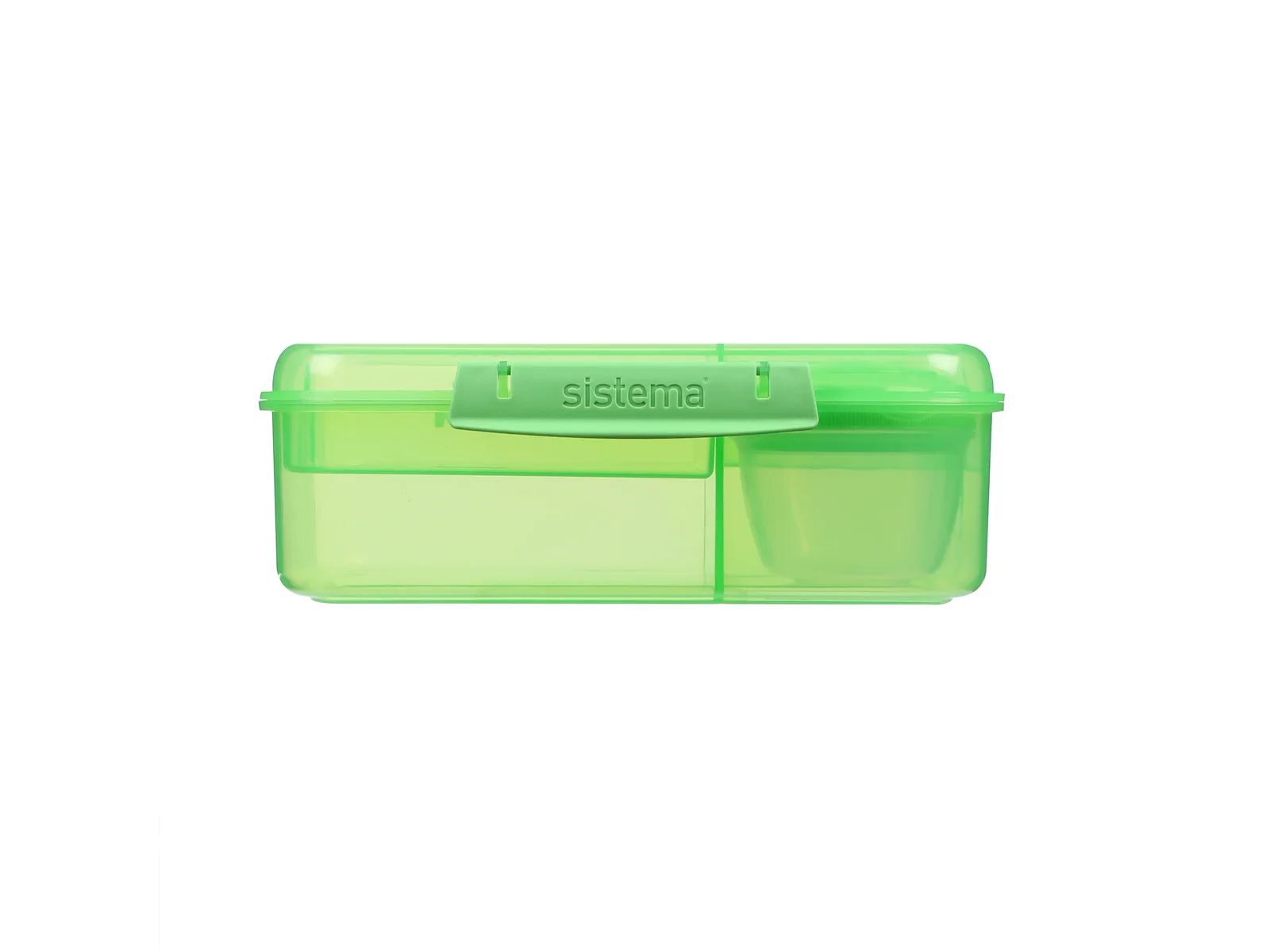 Låget er fastgjort med solide hængsler og lukkes sikkert med Sistema’s ikoniske clips – nemt for både små og store hænder.