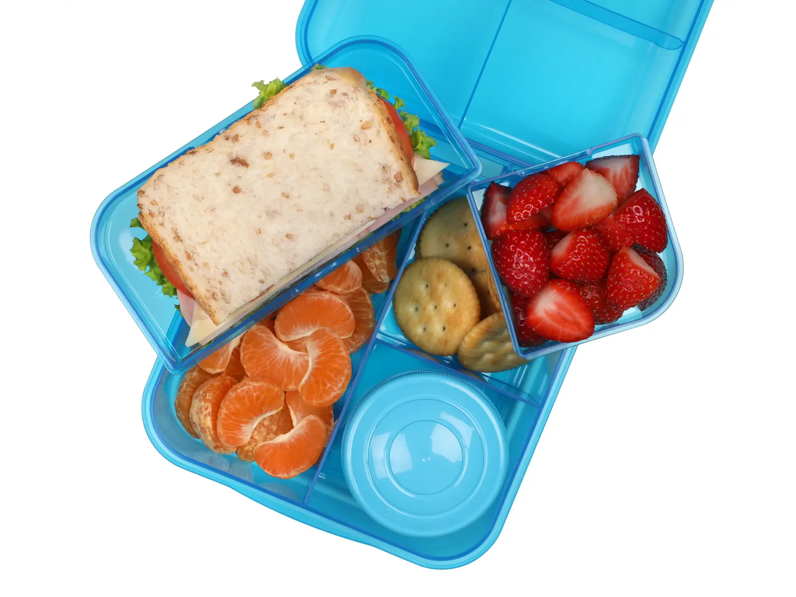 Madkassen har flere aftagelige rum, så du kan tilpasse inddelingen efter behov. Perfekt til små portioner, snacks eller madpakker, hvor overskuelighed er vigtig. De mindre rum holder tilbehør og snacks pænt adskilt, mens hovedrummet er oplagt til større bidder som frugtstykker, små sandwich eller gnavegrønt.