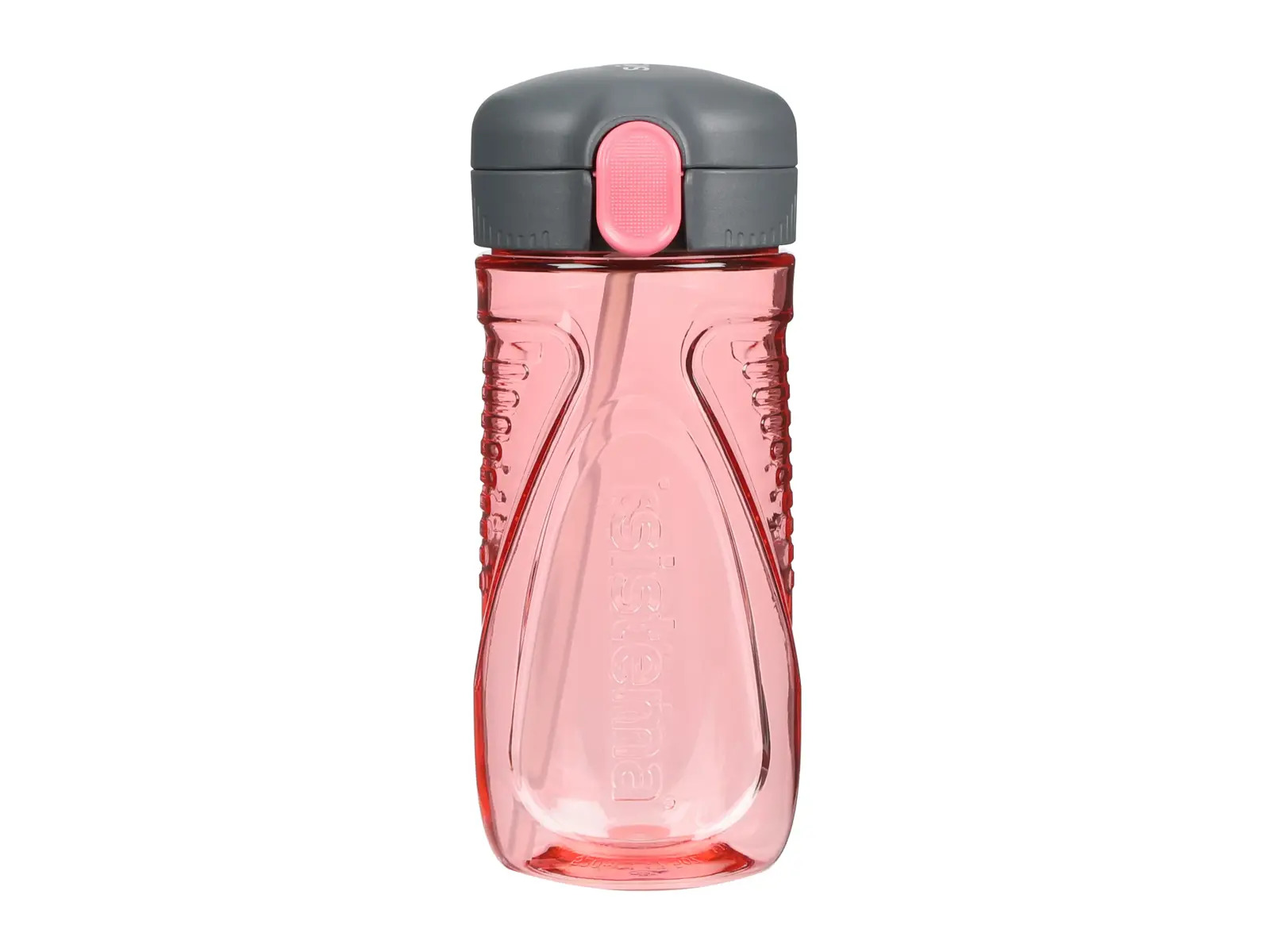 Drikkedunken er udstyret med et smart fliplåg med trykknap. Ét tryk, og det bløde silikonesugerør folder sig ud, så flasken er klar til brug – perfekt til sport, cykelture eller travle skoledage, hvor det skal være nemt at tage en tår.