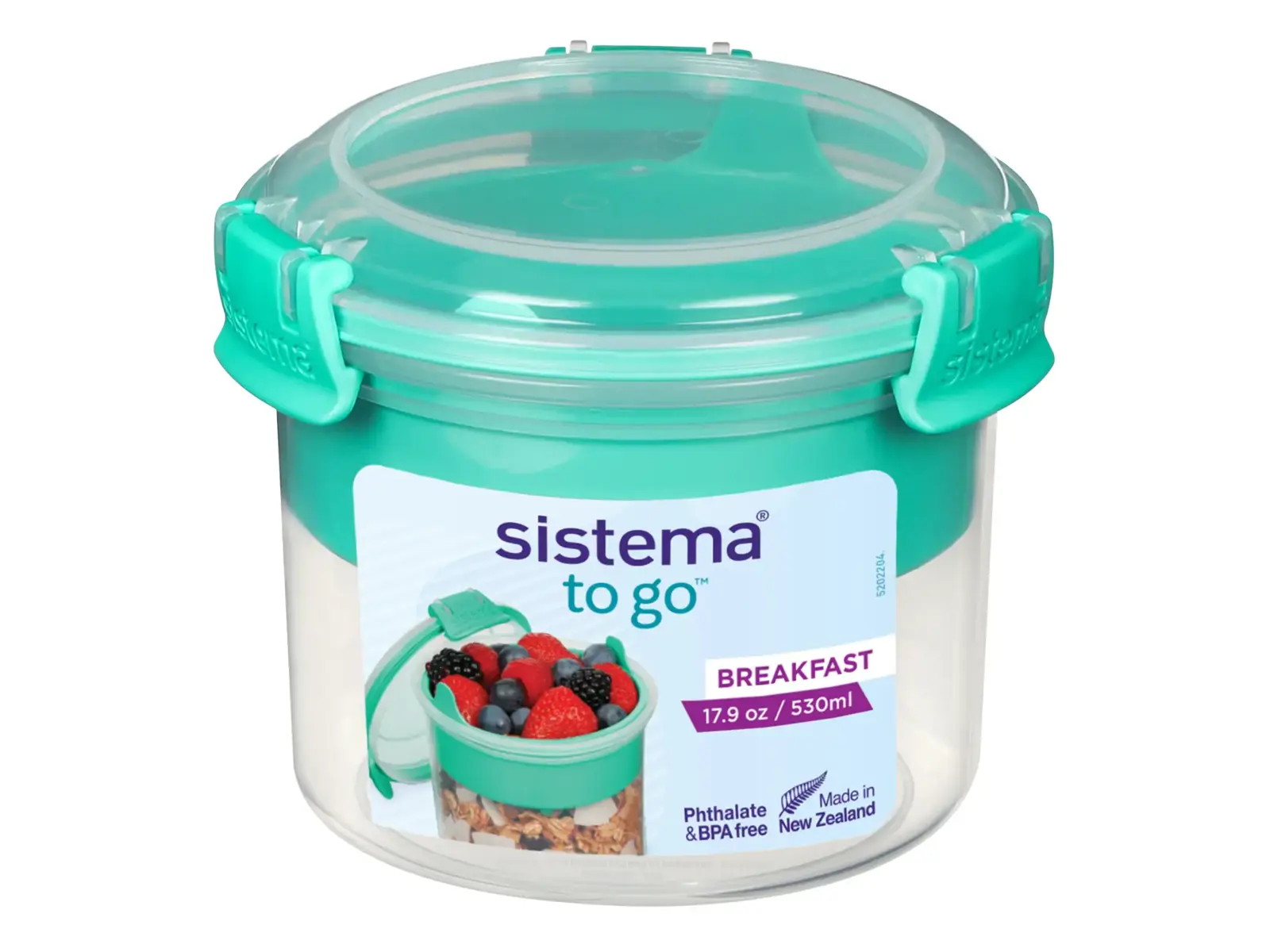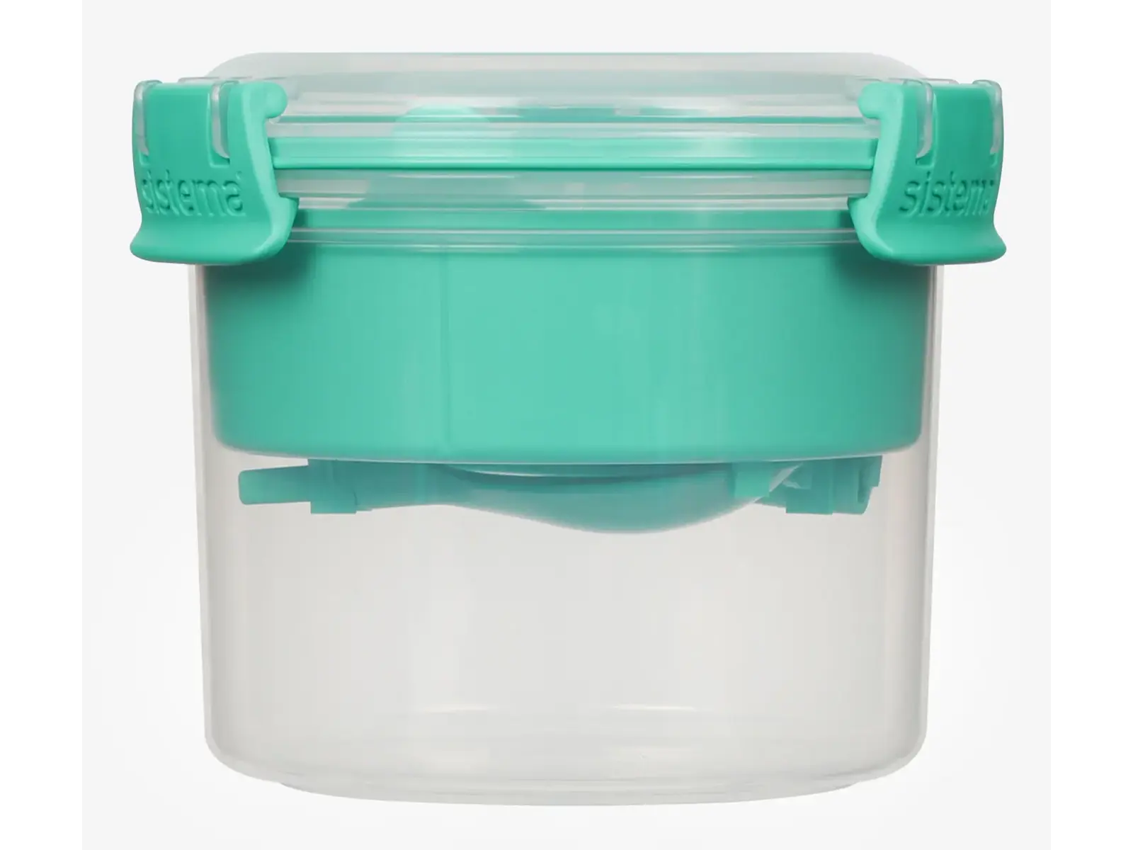 • Praktisk størrelse – 530 ml • 2 rum med udtagelig bakke til adskilt opbevaring • Inkl. lille to-delt ske under indsatsen • Ideel til morgenmad, yoghurt og snacks • Letlåsende Sistema-klips • Transparent design med farvede klips • Tåler opvaskemaskine (øverste hylde) • Tåler fryser • Tåler mikroovn uden låg