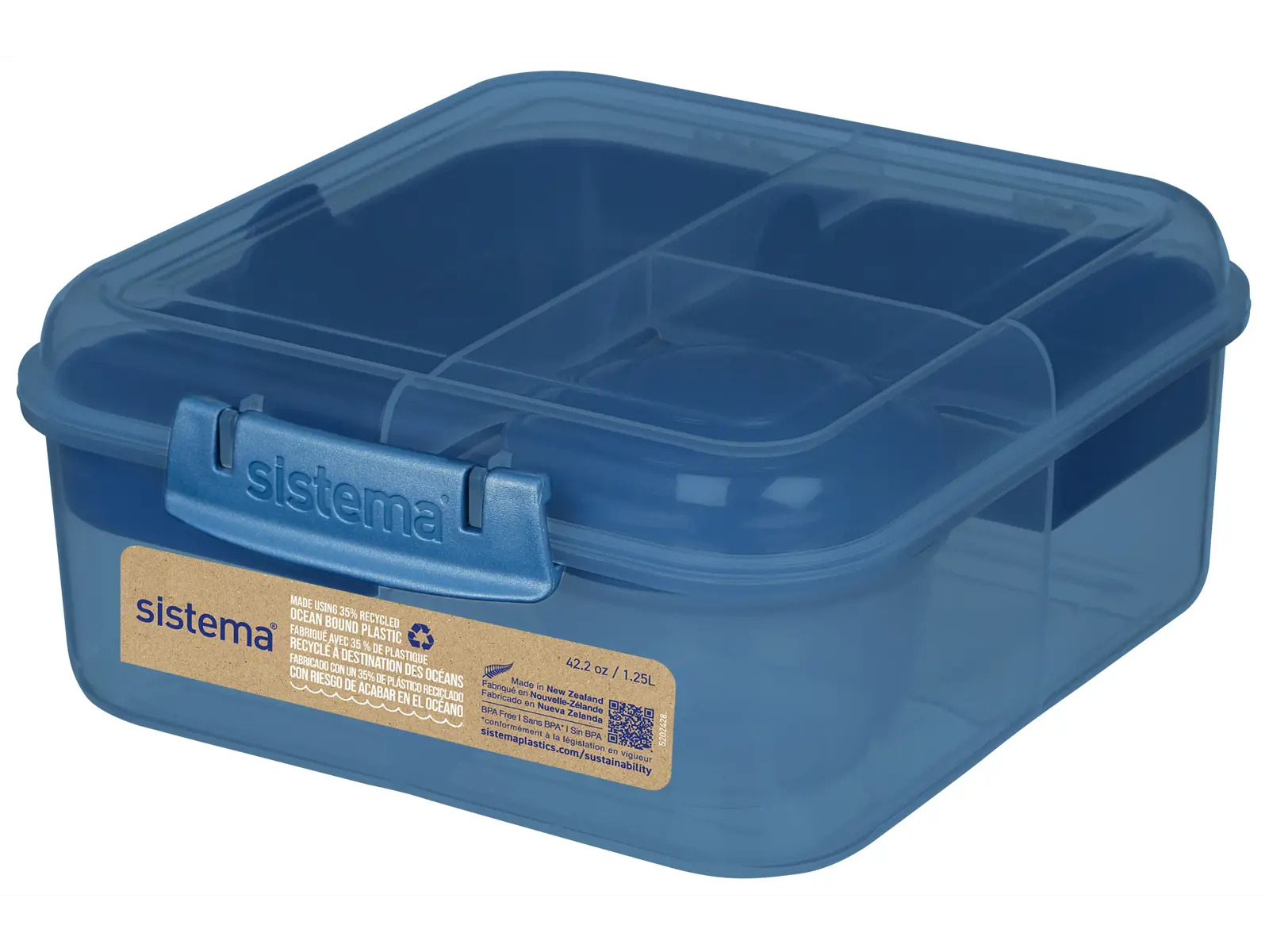 Bento Cube fra Sistema er et ideelt valg til mindre børn, der har brug for en overskuelig madpakke med plads til variation. Den kompakte størrelse på 1,25 L og den smarte opdeling gør det nemt at pakke en lækker og organiseret madpakke, hvor alt holdes adskilt hele dagen.