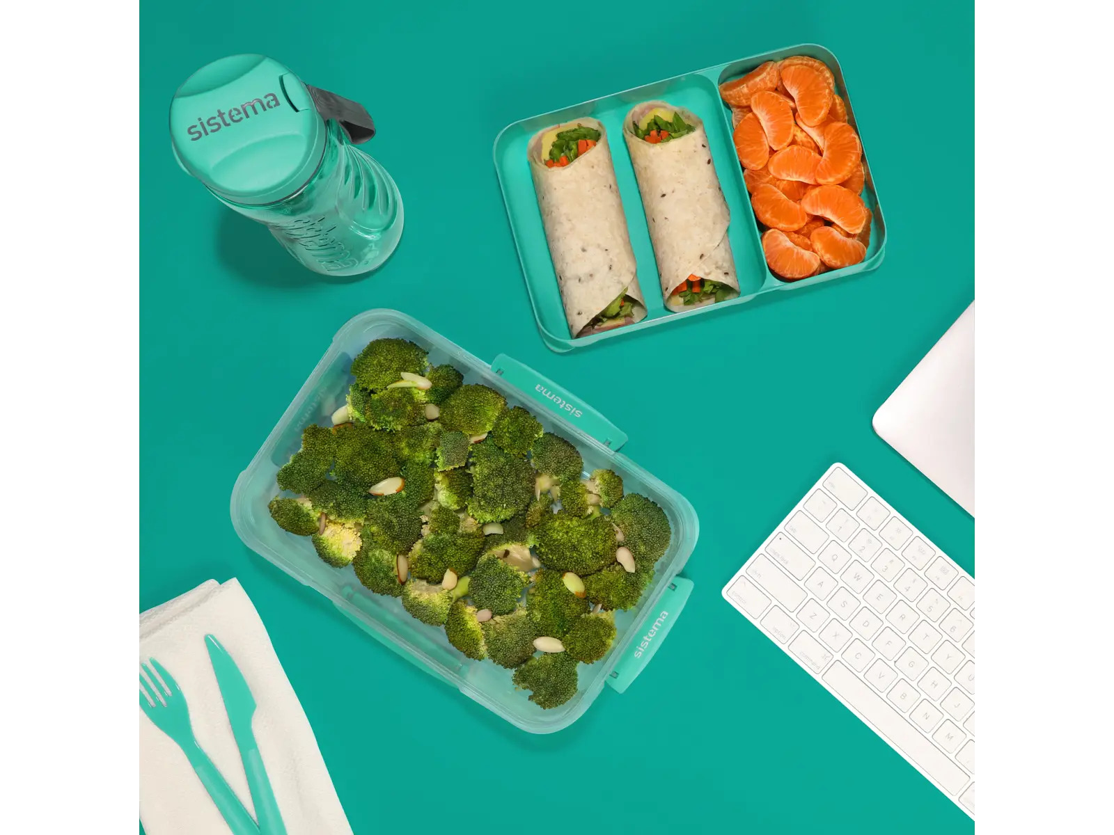 Gør frokosten og snacks på farten både praktiske og organiserede med Sistema Rectangle Stax To Go 2,2 liter i en flot minty teal farve. Denne rummelige madkasse er ideel til både børn og voksne, som ønsker en fleksibel løsning til madpakken – uanset om det er til skole, arbejde, udflugter eller weekendture.