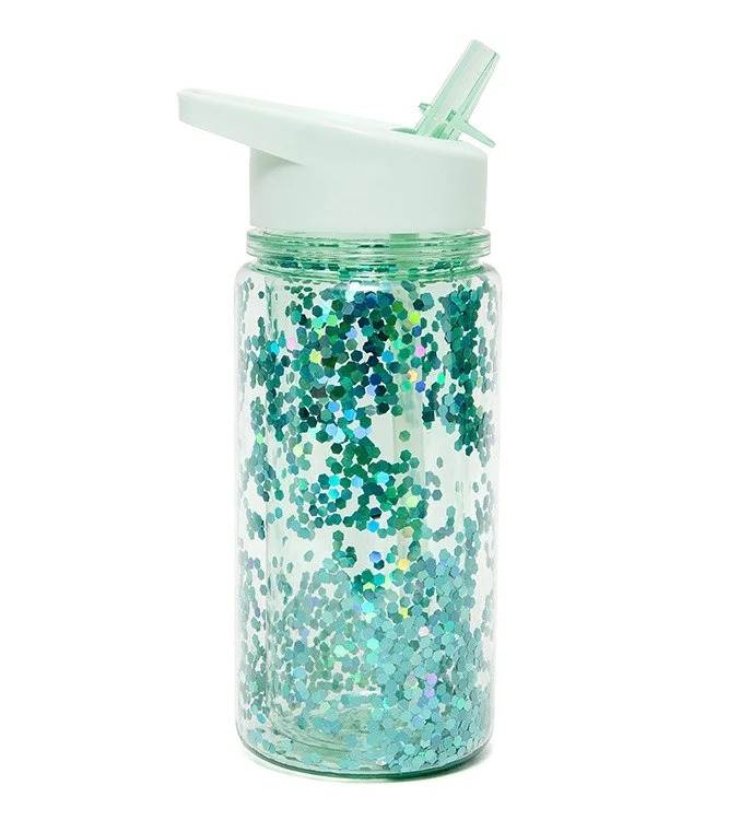 Drikkedunken er dobbeltvægget, og glimmeret bevæger sig, når flasken rystes – en lille detalje, der ofte gør den til en favorit i hverdagen. Den er let at have med i både børnehave, skole og på tur.