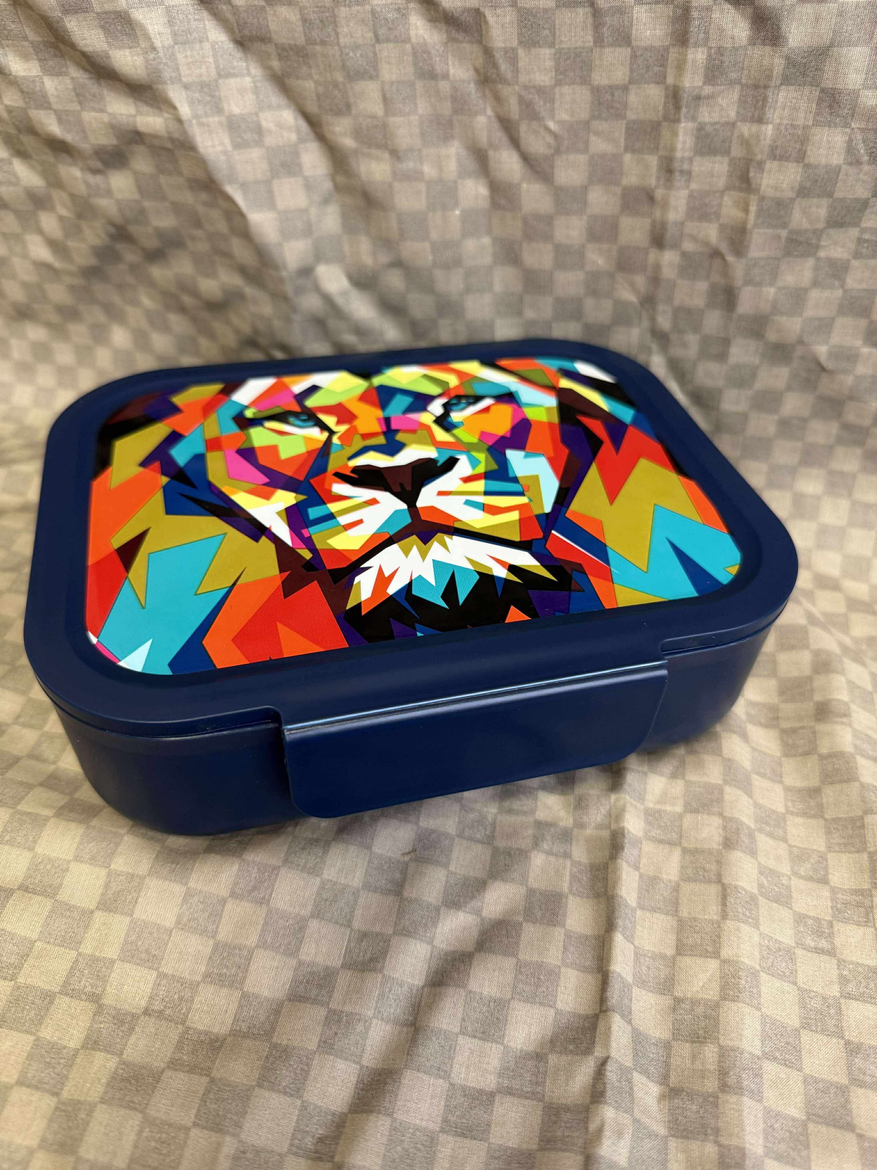 Denne madkasse har et iøjnefaldende løvemotiv, som børn vil elske at tage med i skole eller på tur. Den indeholder et skillerum, så du nemt kan adskille fx sandwich og frugt uden, at smagen blandes. Den lukkes sikkert med en clip-lås, så madpakken holdes intakt under transport.