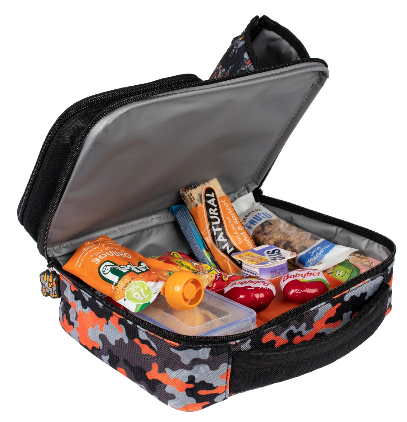 Tasken har en passende størrelse til at rumme en madpakke, snacks og en drikkedunk, hvilket gør den ideel til daglig brug.