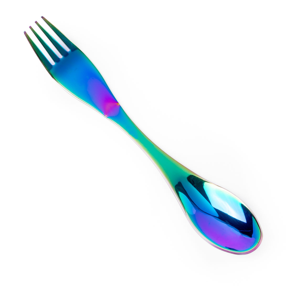 Gør madpakken lidt sjovere med LEKKABOX Spork i rainbow-design – det smarte 2-i-1 bestik, der kombinerer gaffel og ske i én. Sporken er lavet i rustfrit stål, så du får et holdbart og genanvendeligt alternativ til engangsbestik. Den flotte iriserende regnbuefinish giver et farverigt touch til madkassen og gør den nem at kende igen i skolen eller på farten.