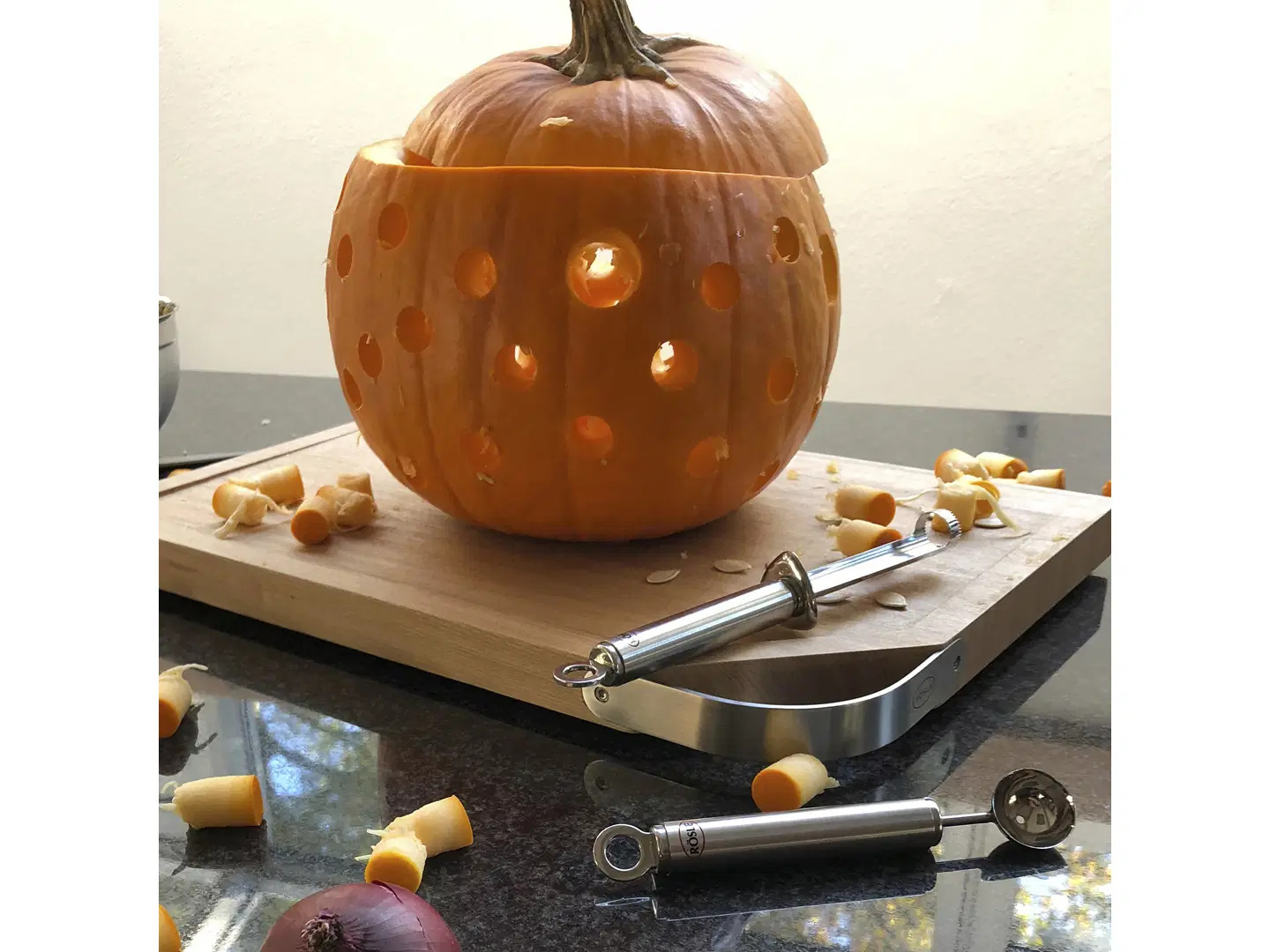 RÖSLE kugleudstikker til at lave små kugler af frugt og grøntsager. Hullet i midten sørger for at frugt- eller grøntsagskuglen ikke hænger fast i køkkenredskabet.