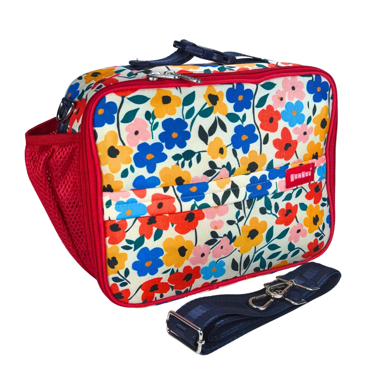 Yumbox Classic Køletaske : Køletasken er lavet af vandafvisende letvægtsmateriale og passer til alle Yumbox madkasser i størrelsen Køletasken er indrettet med et stort rum til madkassen, en lille lomme i låget samt en lomme på ydersiden af køletasken Køletasken åbnes og lukkes med 2 gode og holdbare lynlåse. Håndtaget er polstret så det er behageligt for selv de mindste hænder På billedet ses køletasken med en Yumbox Tapas i, som er Yumbox største madkasse
