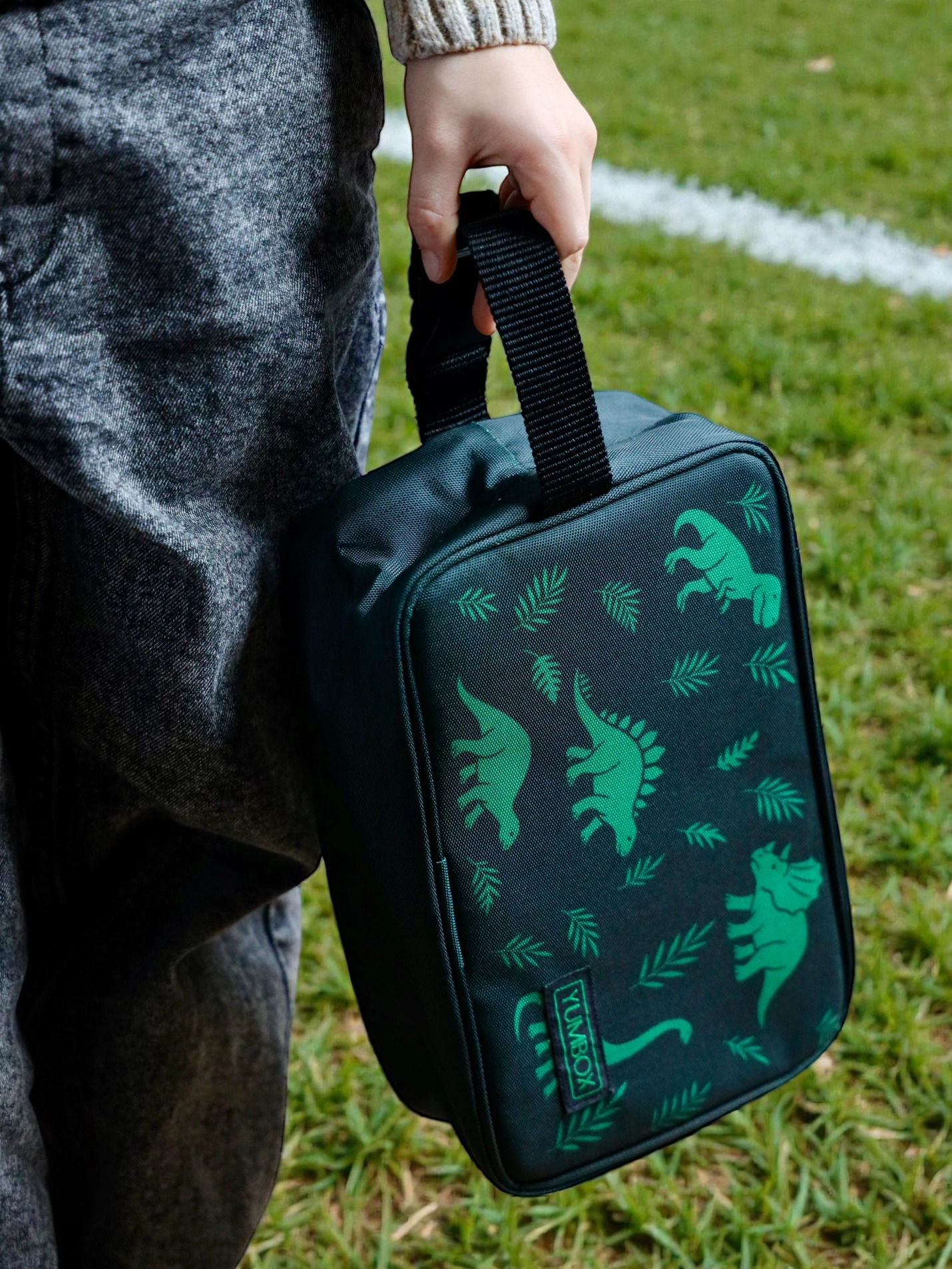 Gør madpakken ekstra sjov med denne Yumbox køletaske i et sejt dinosaur design. Tasken er isoleret og hjælper med at holde maden frisk og kølig gennem hele dagen – perfekt til både skole, børnehave og udflugter.