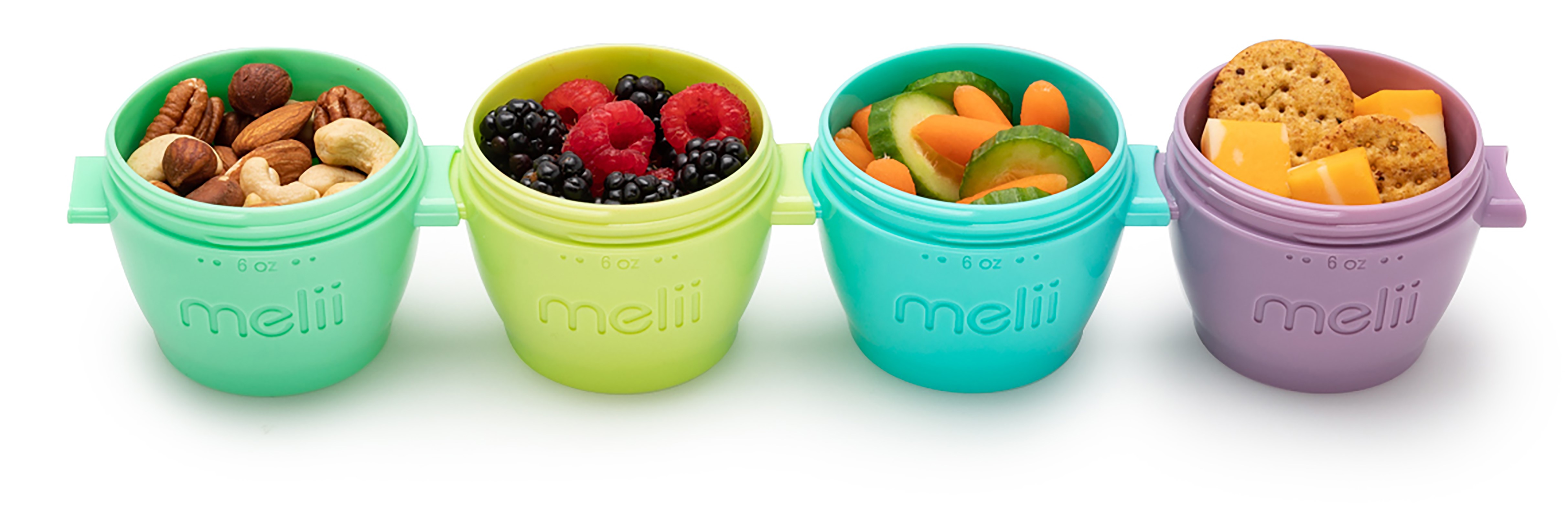 Perfekt til servering af snacks, opbevaring af større portioner babymad eller endda hjemmelavet legedej Disse containere er super alsidige. De er : - Mikrobølgesikre - Fryser sikker - Lækagesikker Og de stabler lodret og fastgøres vandret. Mikrobølgeovn, fryser og top rack opvaskemaskine sikker. BPA, bly, PVC og cadmium fri. - 4 aftagelige og stabelbare flerfarvede 4 oz/118 ml beholdere - Beholdere fastgøres vandret og stables lodret - Lufttæt og lækagesikkert dæksel hjælper med at forhindre spild og fryseforbrænding