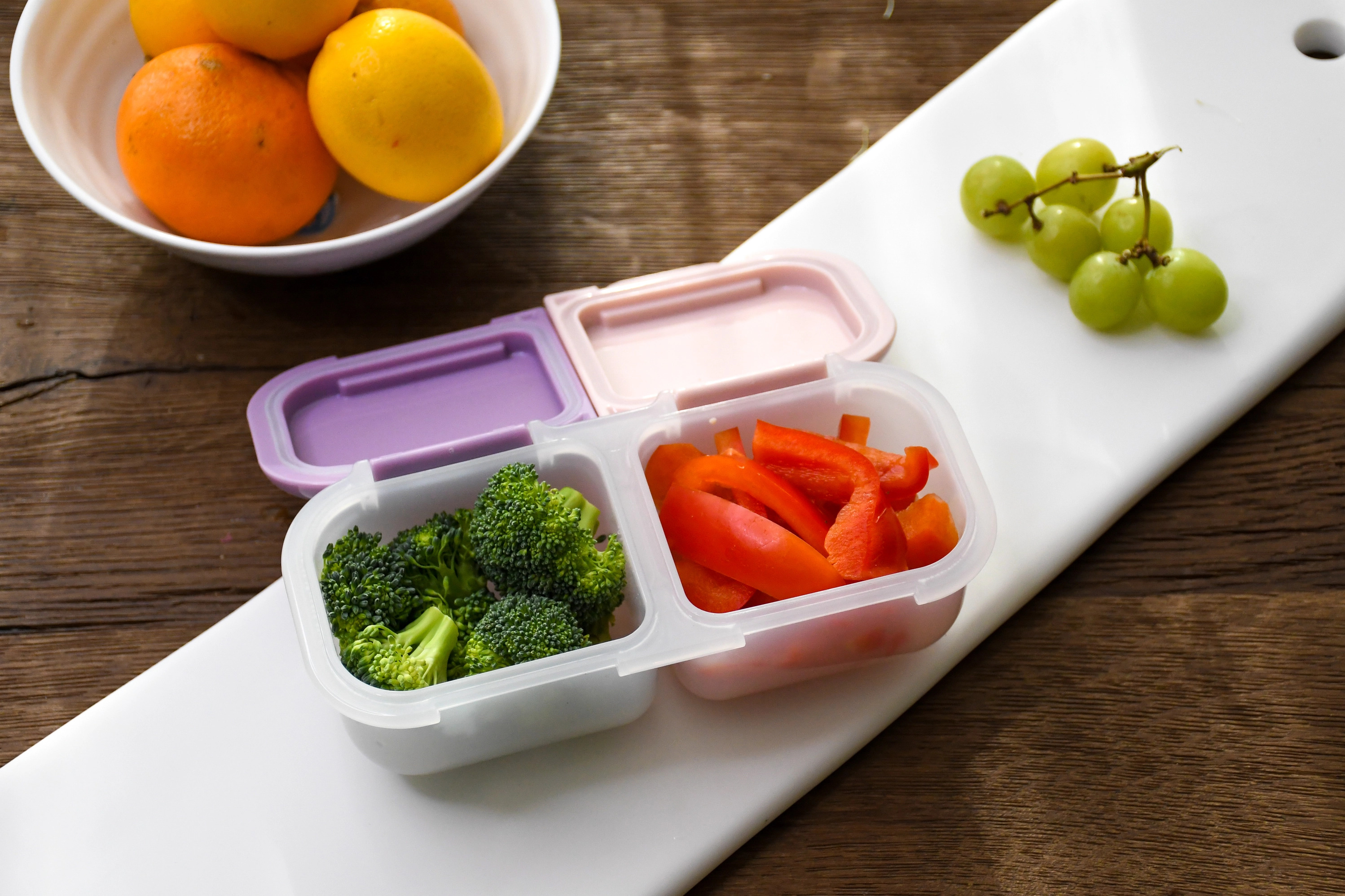 Individuelle rum og låg: Hvert rum kan åbnes for sig, så snacks som frugt, grønt og dip holdes adskilt – uden risiko for blanding eller spild.