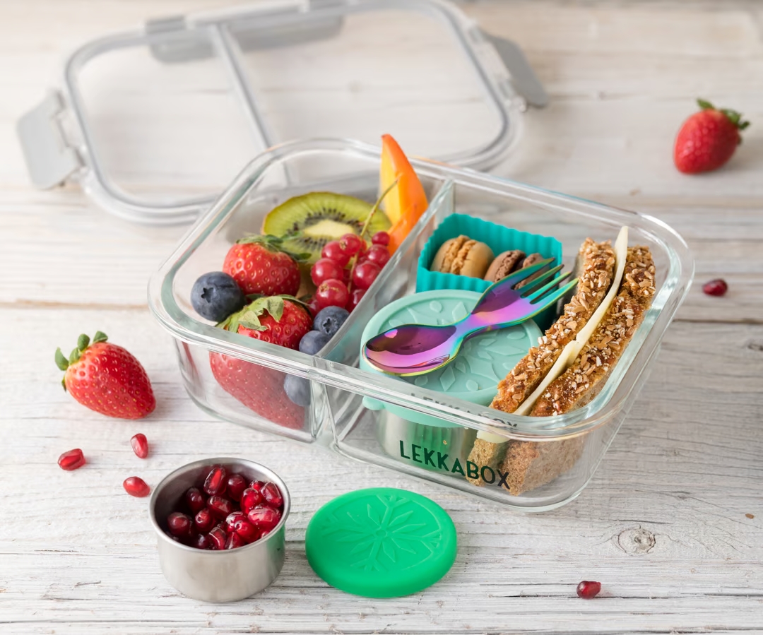 Med disse dipper-bokse får du to stilfulde og praktiske beholdere, der gør det nemt at medbringe sauce eller snacks uden at de flyder. Farven mint giver et friskt touch til madpakken eller snackstunderne.