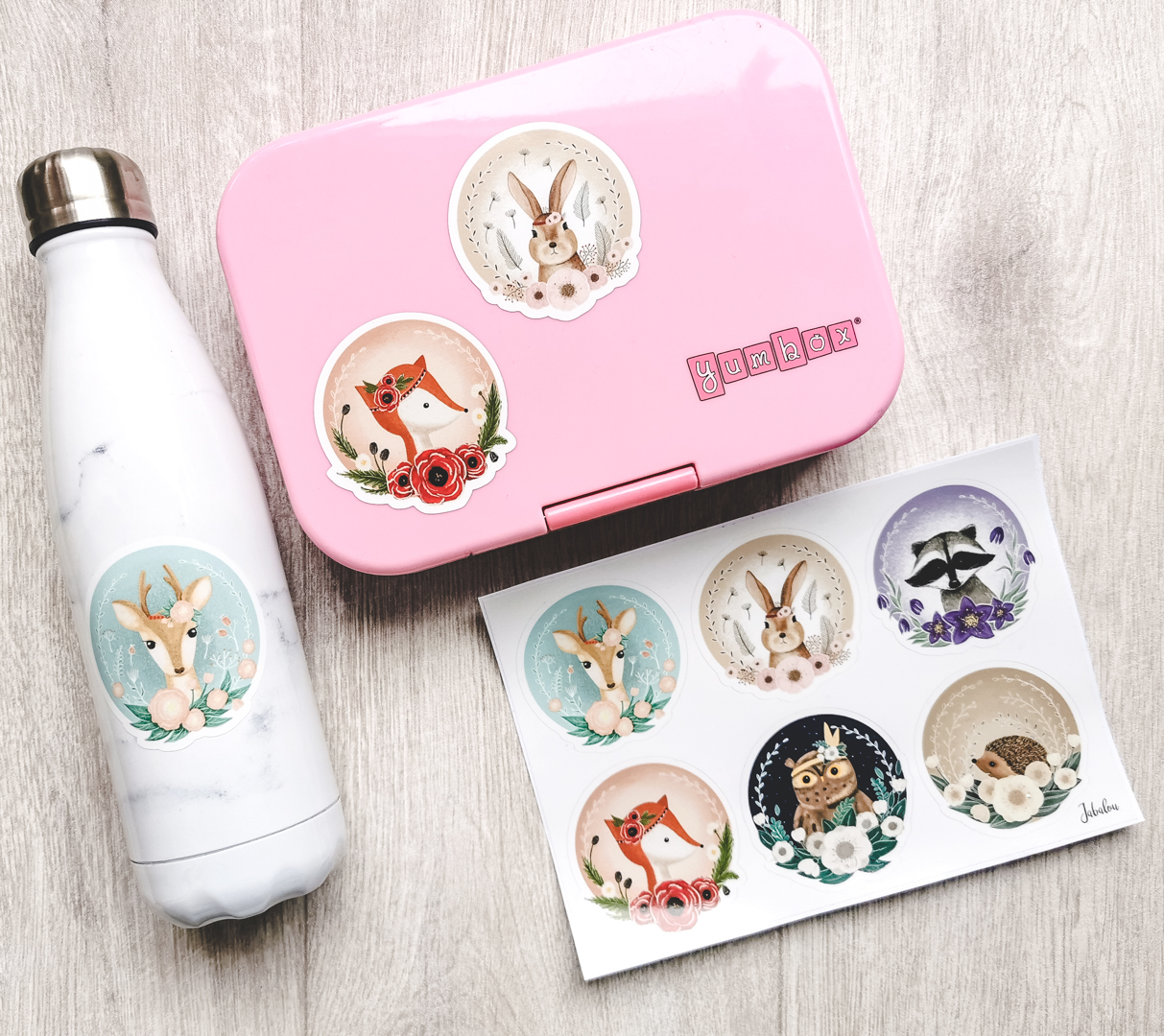 Gør hverdagens ting unikke med Jabalous højkvalitets klistermærker i trendy designs. De er perfekte til at dekorere alt fra madkasser, drikkedunke og byggeklodser til cykelhjelme, møbler og døre. Klistermærkerne tåler opvaskemaskine på glatte overflader* og er både opløsningsmiddelfri, miljøvenlige og lysægte.