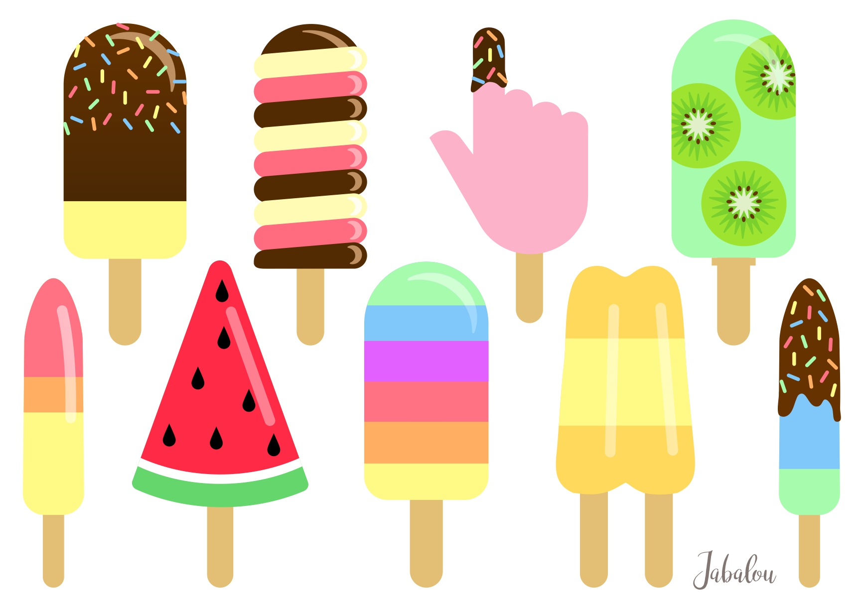 1 stk. A6-ark med vandtætte stickers formet som lækre is