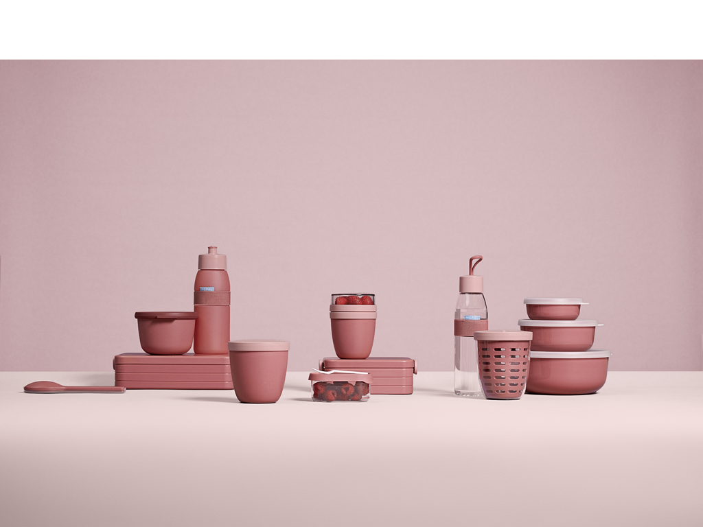 Flot og robust To Go-vandflaske med smart elastisk "mavebælte" og praktisk strop i låget. Velegnet til opvaskemaskine. Vandflaske Ellipse 500 ml Vivid mauve