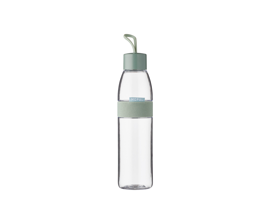 Flot og robust To Go-vandflaske med smart elastisk "mavebælte" og praktisk strop i låget. Velegnet til opvaskemaskine. Vandflaske Ellipse 700 ml Nordic sage