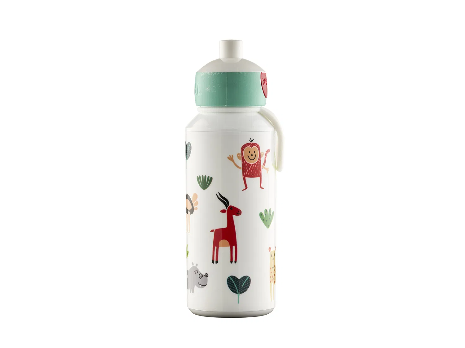 Den praktiske flip-up-funktion gør det nemt for barnet at drikke: sugerøret springer op med et enkelt tryk, og flasken lukkes tæt igen, når sugerøret trykkes ned. Det betyder ingen spild i tasken og en drikkedunk, som er nem at betjene selv for små hænder.