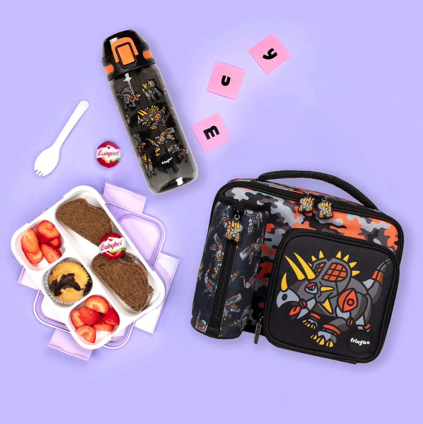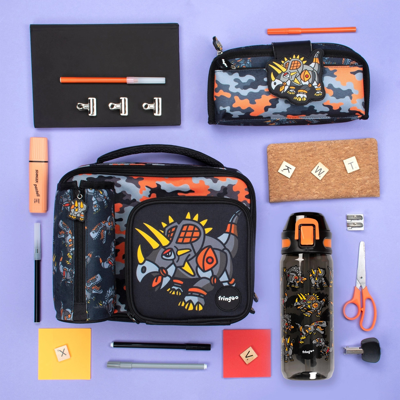 Fringoo drikkedunk med sugerør – Dinosaur Robot 600 ml er en stor og robust flaske, som kombinerer sejt design med praktisk funktion. Med plads til 600 ml har du rigelig med væske med hele dagen til skole, fritid og ture.