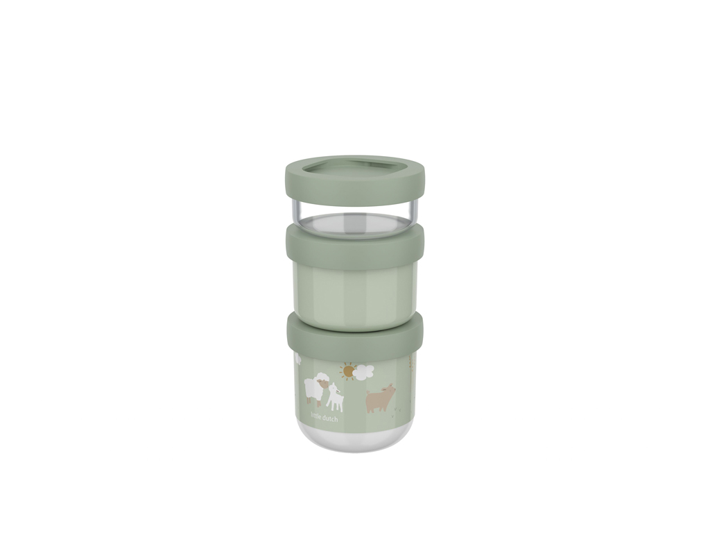 Dette sæt indeholder tre stapelbare snackbokse i det charmerende Little Farm-design fra Mepal og Little Dutch. Perfekte til opbevaring af snacks, små måltider eller småting til børn.