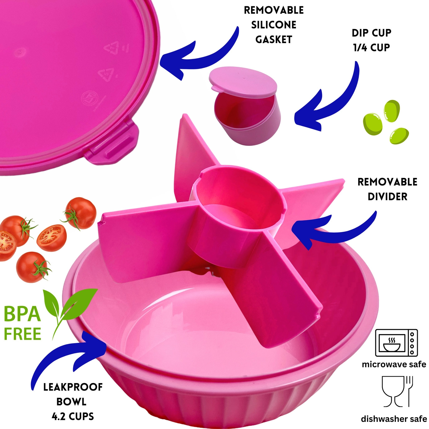 Put blot ingredienser adskilt i de forskellige rum, og løft midtersektionen ud, når det er tid til at blande det hele sammen til en lækker salat.