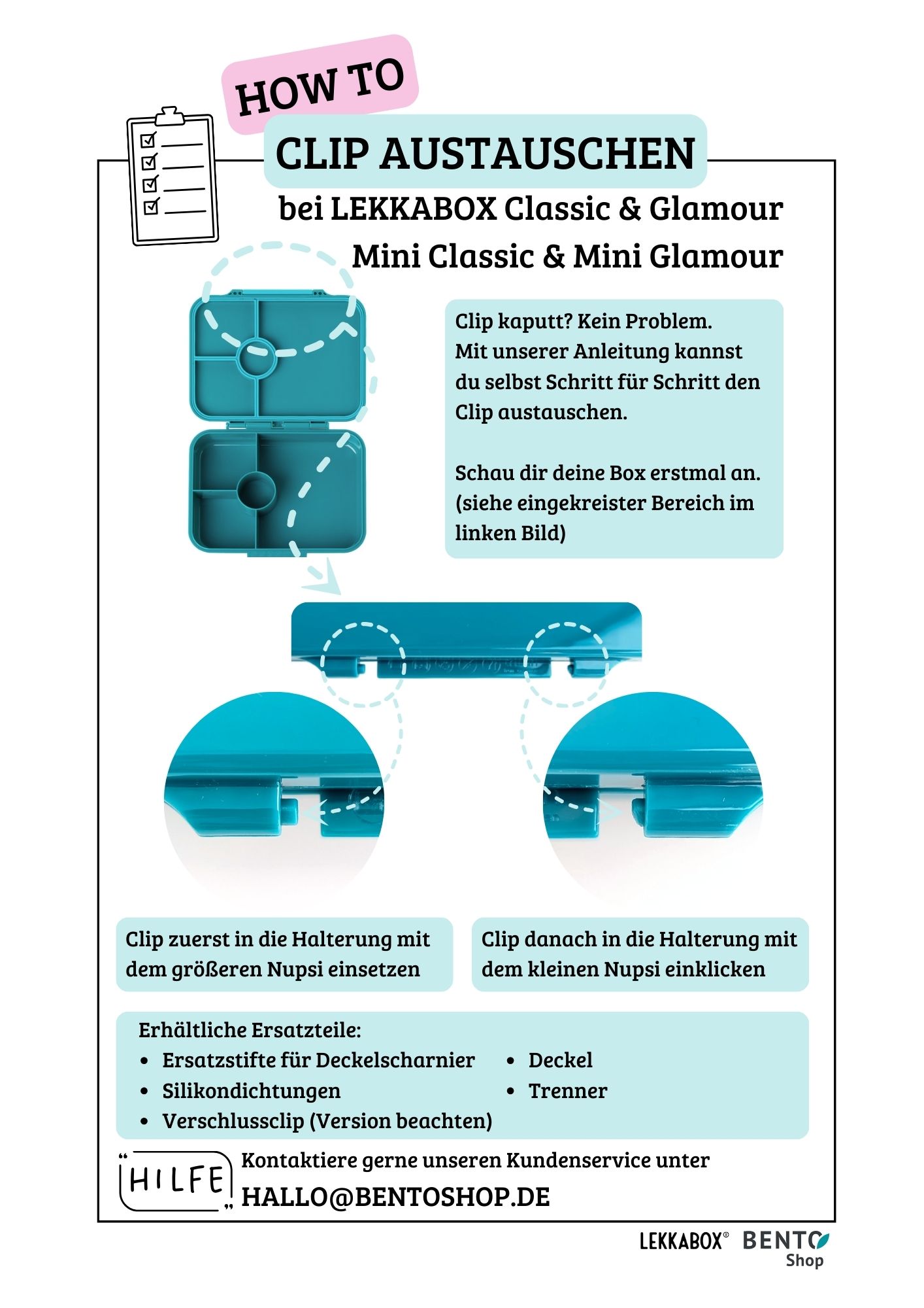 Med denne clip kan du forlænge levetiden på din LEKKABOX madkasse, hvilket er både enkelt og mere bæredygtigt end at købe en helt ny madkasse.